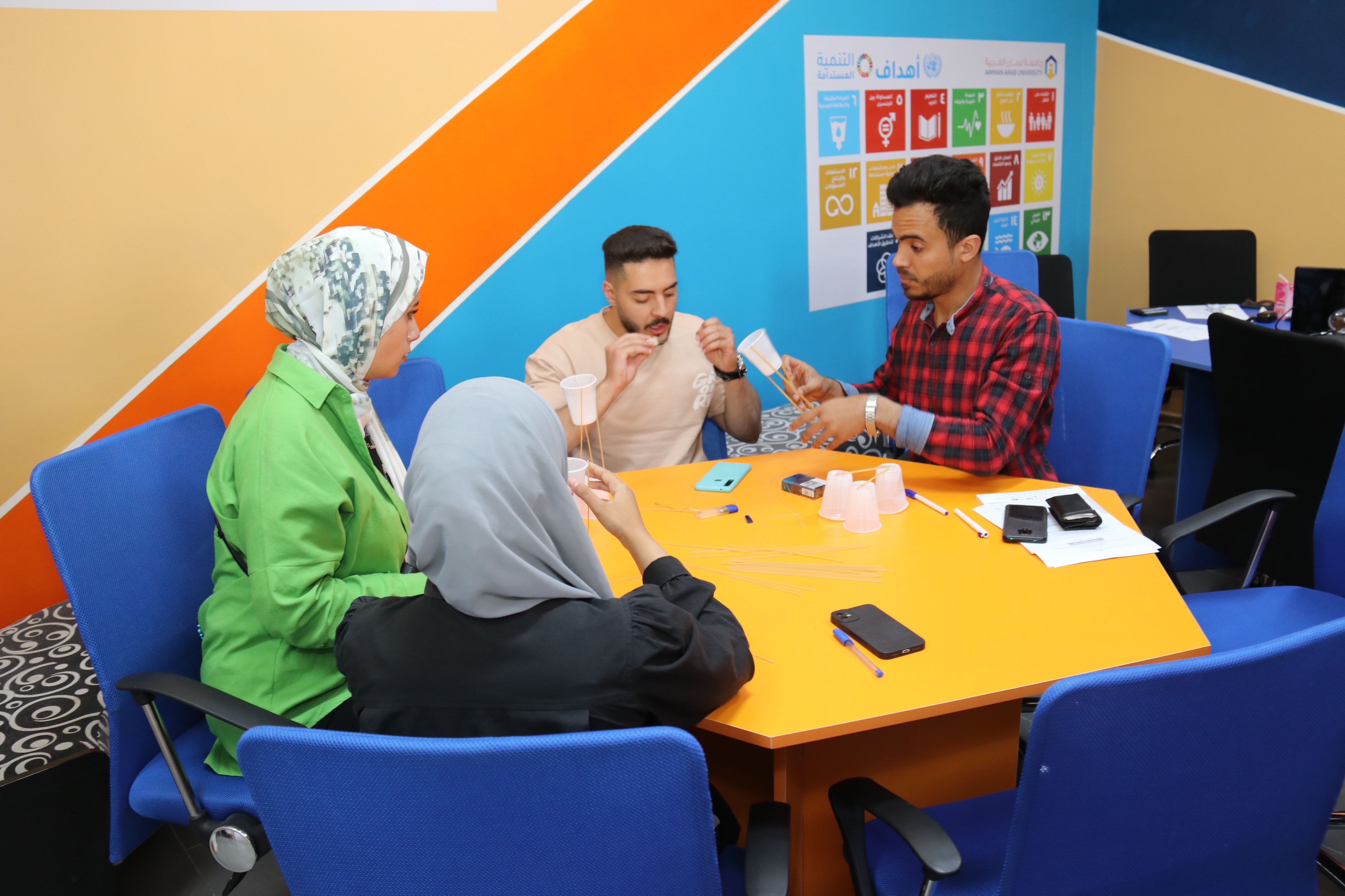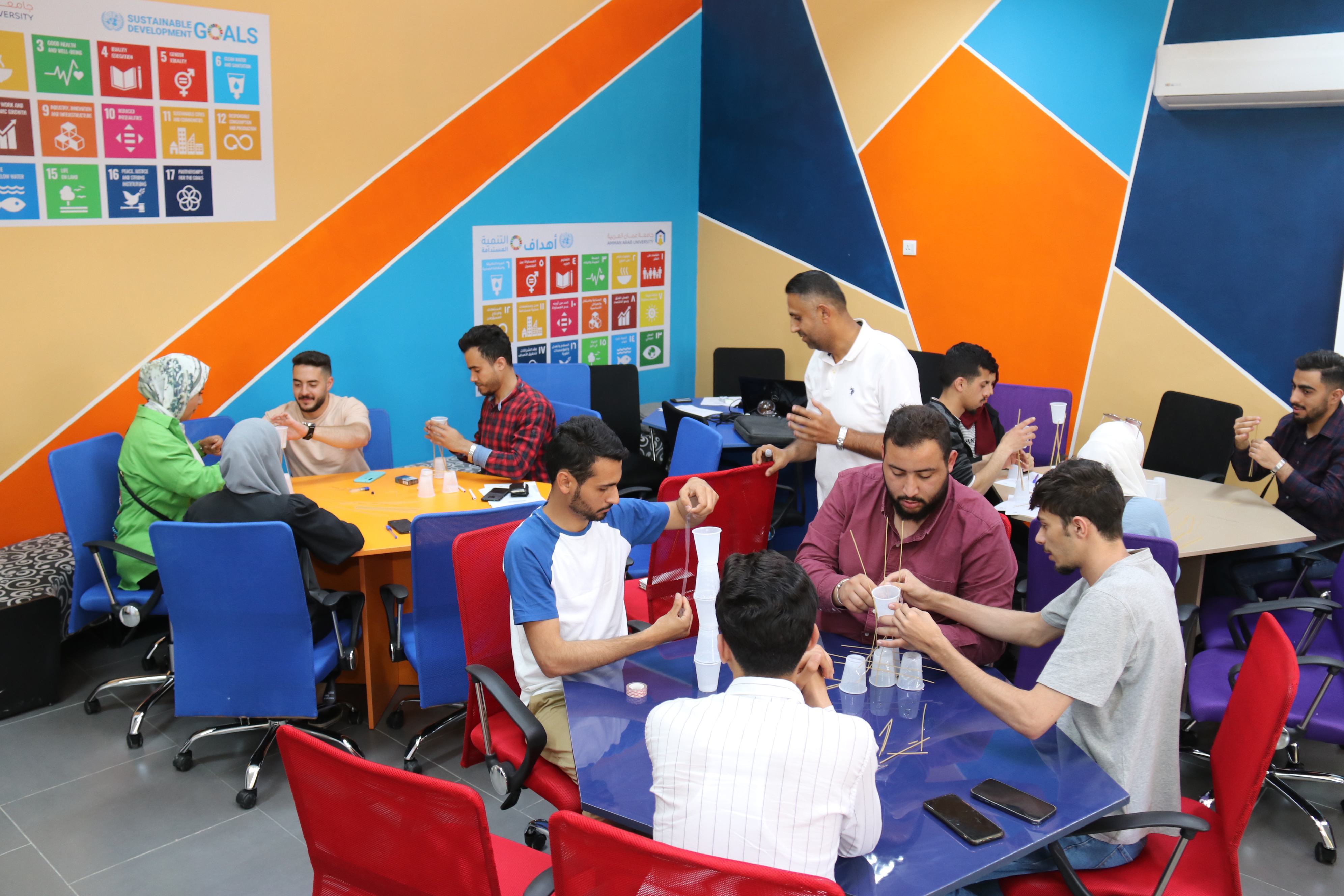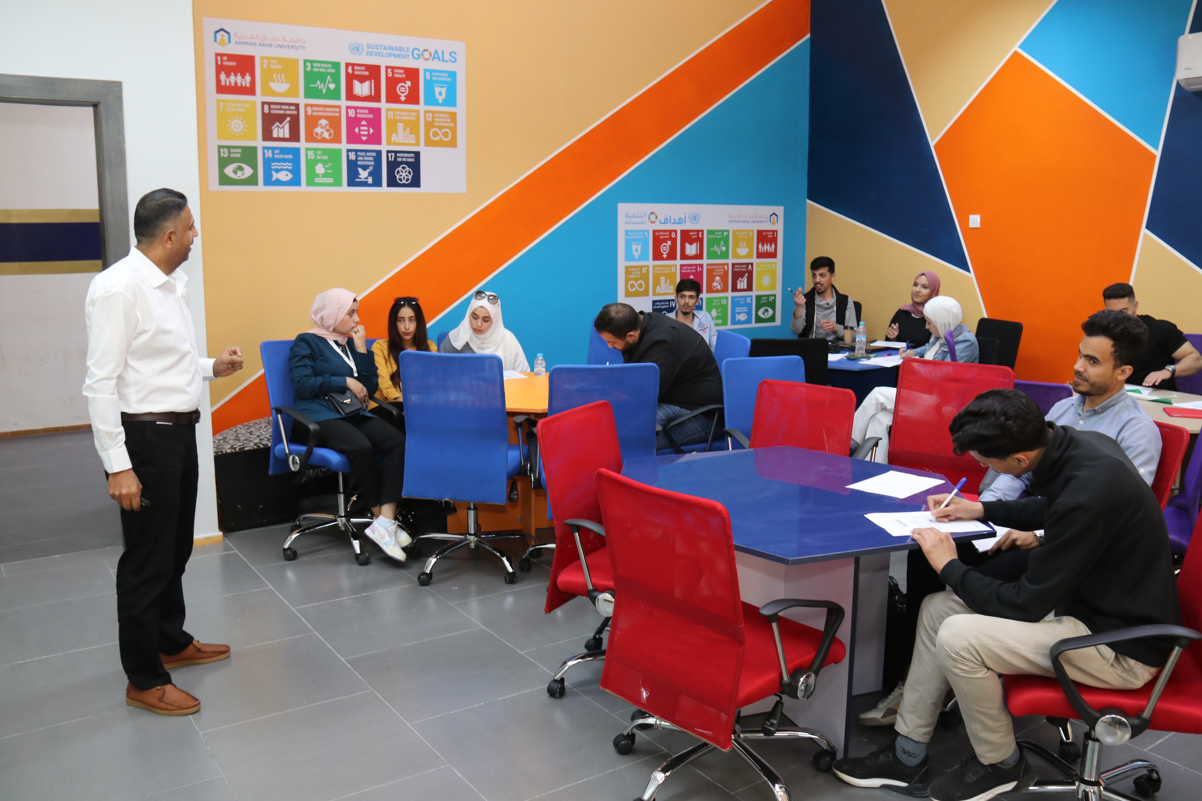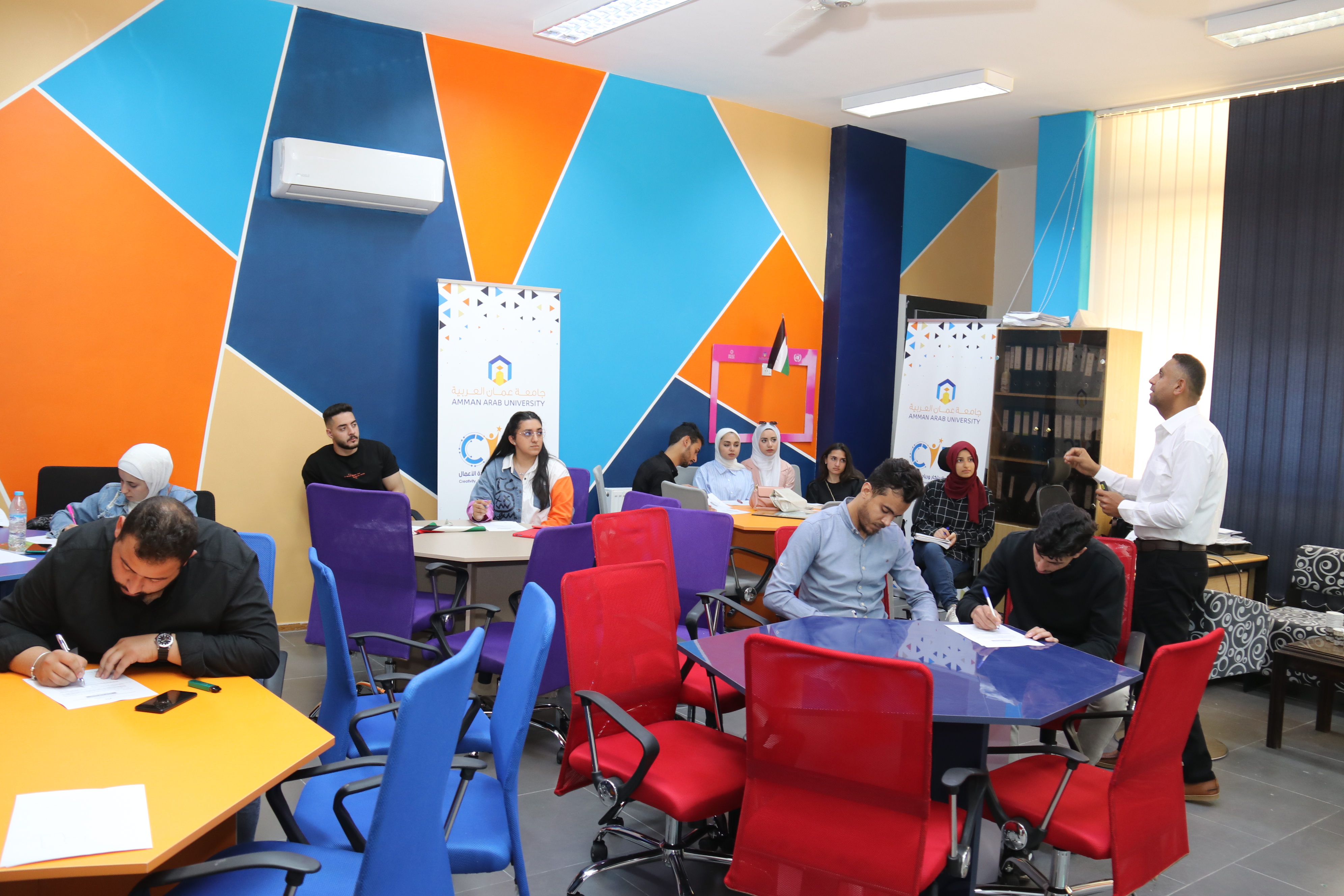 عمون - شارك طلبة جامعة عمّان العربية في أعمال ورشة عمل تدريبية متخصصة بعنوان "طريقك إلى عالم الإبداع وريادة الأعمال" والتي تأتي في أطار نهج الجامعة في دعم وتعزيز ثقافة الابتكار و ريادة الأعمال لدى طلبتها، حيث استهدفت الورشة طلبة الجامعة من جميع الكليات والتي استمرت على مدار يومين تخللها جانب نظري وجانب عملي تفاعلي، وهدفت الورشة إلى ترسيخ ثقافة الإبداع والابتكار وريادة الأعمال وتشجيع الطلبة على الابتكار والتفكير الإبداعي والعمل على اكتشاف قدراتهم الذاتية والخروج بأفكار ريادية وتحويلها إلى مشاريع وأعمال تجارية ريادية. |