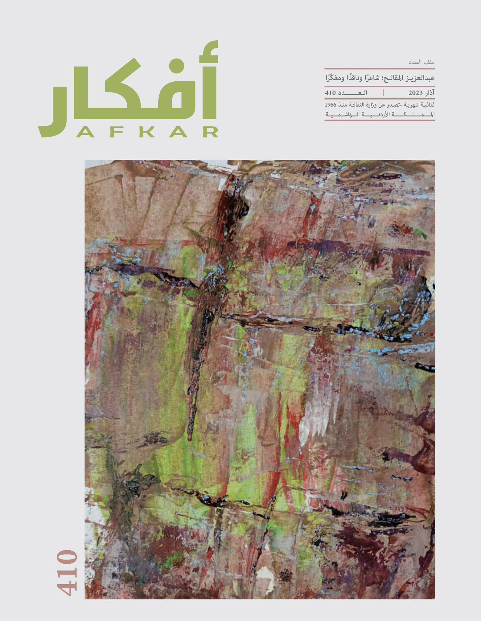 عمون - صدر العدد 410 من مجلة "أفكار" الشهريّة التي تصدر عن وزارة الثقافة الأردنيّة، ويرأس تحريرها الدكتور غسان عبد الخالق، وتتضمن مجموعةً من الموضوعات والدراسات والإبداعات الجديدة التي شارك في كتابتها نخبةٌ من الكتّاب من الأردن وخارجه.