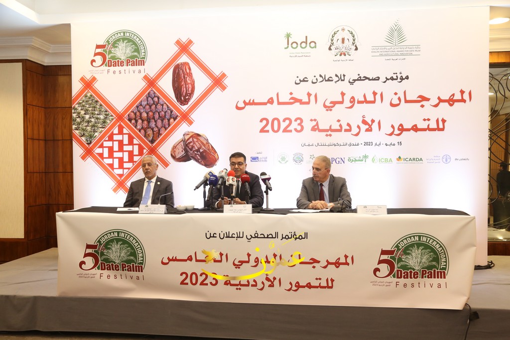 جاء ذلك خلال مؤتمر صحفي عُقِدَ اليوم الاثنين بفندق انتركونتيننتال عمّان، بحضور أمين عام جائزة خليفة الدولية لنخيل التمر والابتكار الزراعي بدولة الإمارات العربية المتحدة الدكتور عبد الوهاب زايد، والقائم بأعمال سفارة دولة الإمارات العربية المتحدة بالمملكة الأردنية الهاشمية هاني بن هويدن، ورئيس جمعية التمور الأردنية المهندس أنور حداد، وعدد من ممثلي المنظمات الإقليمية والدولية المقيمين بالأردن.