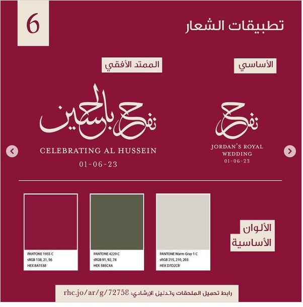 عمون - شرح المصمم الغرافيكي الأردني محمد فحماوي، عناصر الشعار الرسمي لمناسبة عقد قران سمو الأمير الحسين بن عبدالله الثاني، ولي العهد، على الآنسة رجوة خالد السيف، والذي نشره الديوان الملكي الهاشمي.
