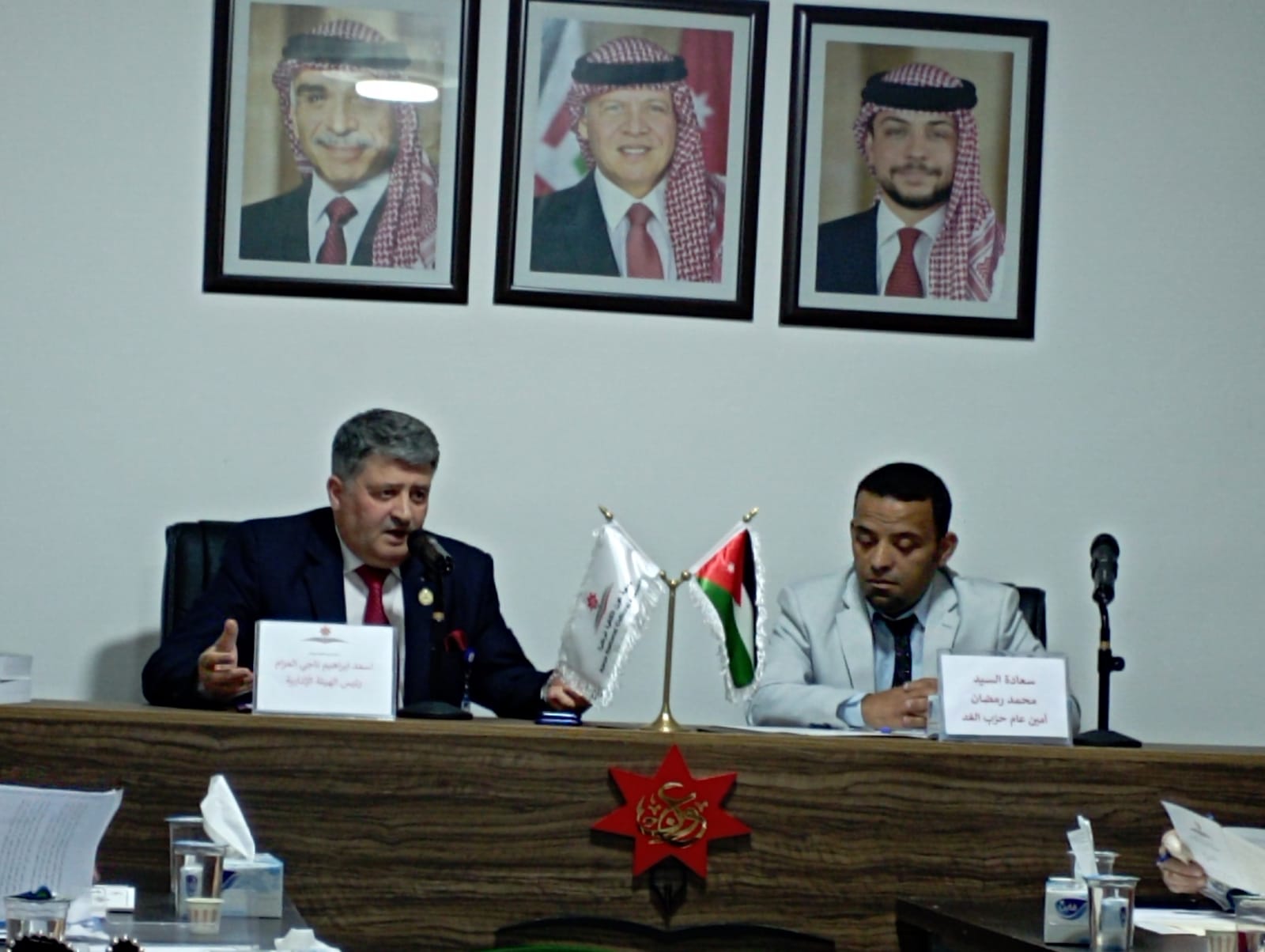 وبدوره قدم محمد رمضان امين عام حزب الغد الأردني الشكر والتقدير لرئيس وأعضاء الهيئة الإدارية على هذه المبادرة وإستعرض بنبذة مختصرة مسيرة الحزب ورسالته ورؤيته المستقبلية.