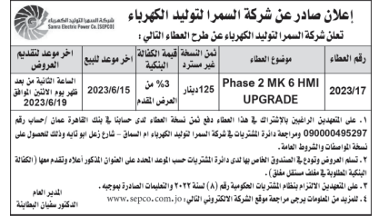 عطاء صادر عن شركة السمرا لتوليد الكهرباء