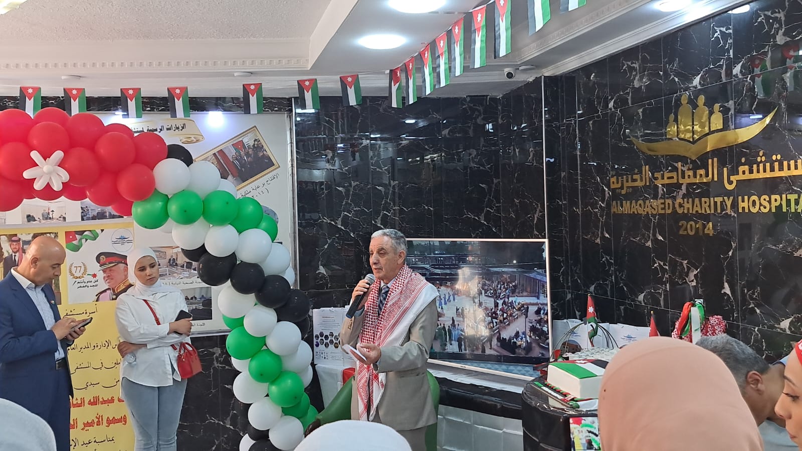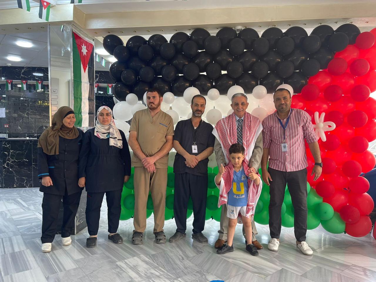 عمون - بالبهجة والفرح والشعور بالعزة والكرامة، احتفل مستشفى المقاصد الخيرية بحضور عدد كبير من الموظفين والمراجعين بمناسبة عيد الاستقلال وقرب زواج ولي العهد الامير الحسين بن عبدالله والأنسة رجوة خالد السيف.