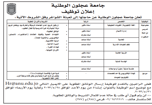 وظائف شاغرة لدى جامعة عجلون الوطنية