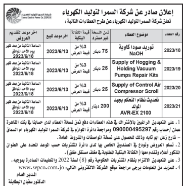 عطاءات صادرة عن شركة السمرا لتوليد الكهرباء