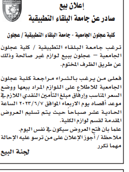 عطاء صادر عن جامعة البلقاء التطبيقية