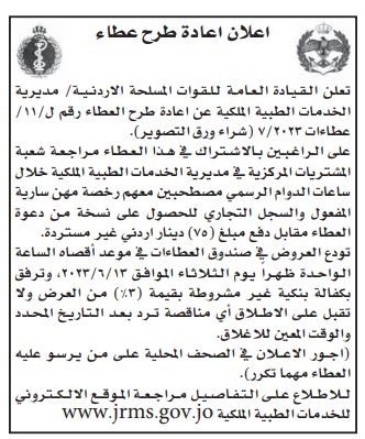 عطاءات صادرة عن الخدمات الطبية الملكية