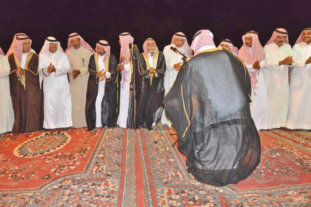 ويضيف: يبدأ السامر باصطفاف عدد من الرجال بصورة مستقيمة، وعند انتهاء الإنشاد، يبدأ الجميع برفع الصوت بكلمة دحية مع ثني الركبة، والكلمة في حد ذاتها تدعو طرفي الصف المستقيم للانعطاف إلى الداخل لتشكيل سطر مقوس كي يرى بعضهم بعضا على شكل نصف دائرة، وهذا هو الدحي، أما (السحجة)، فهي من السحج، أي صفق الكفين مع دفعهما إلى الأمام.