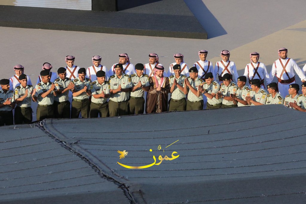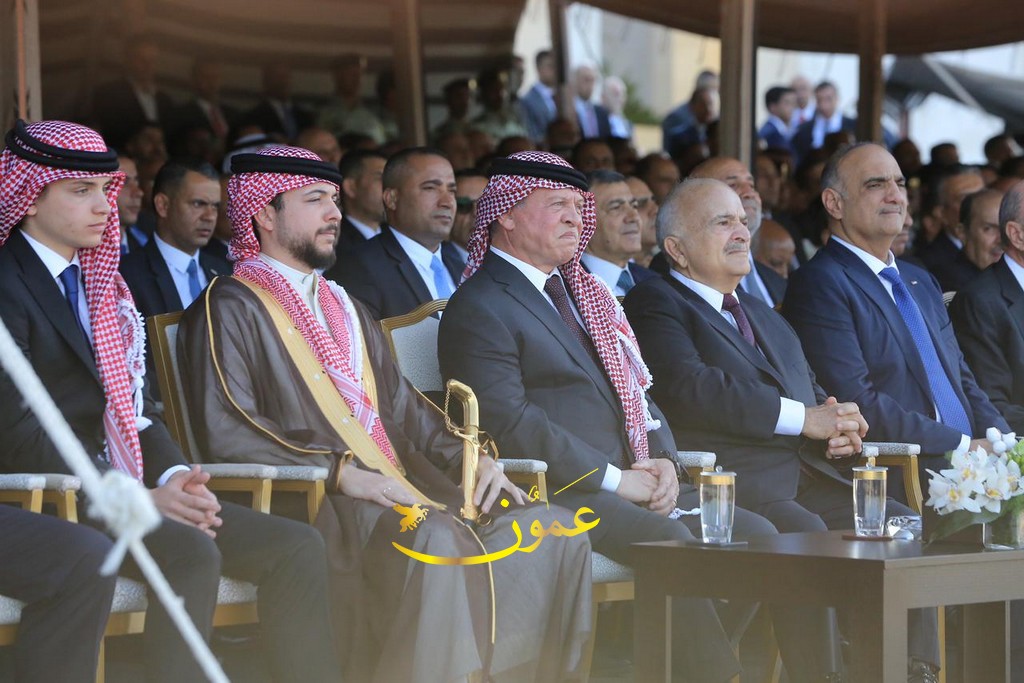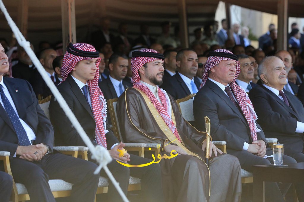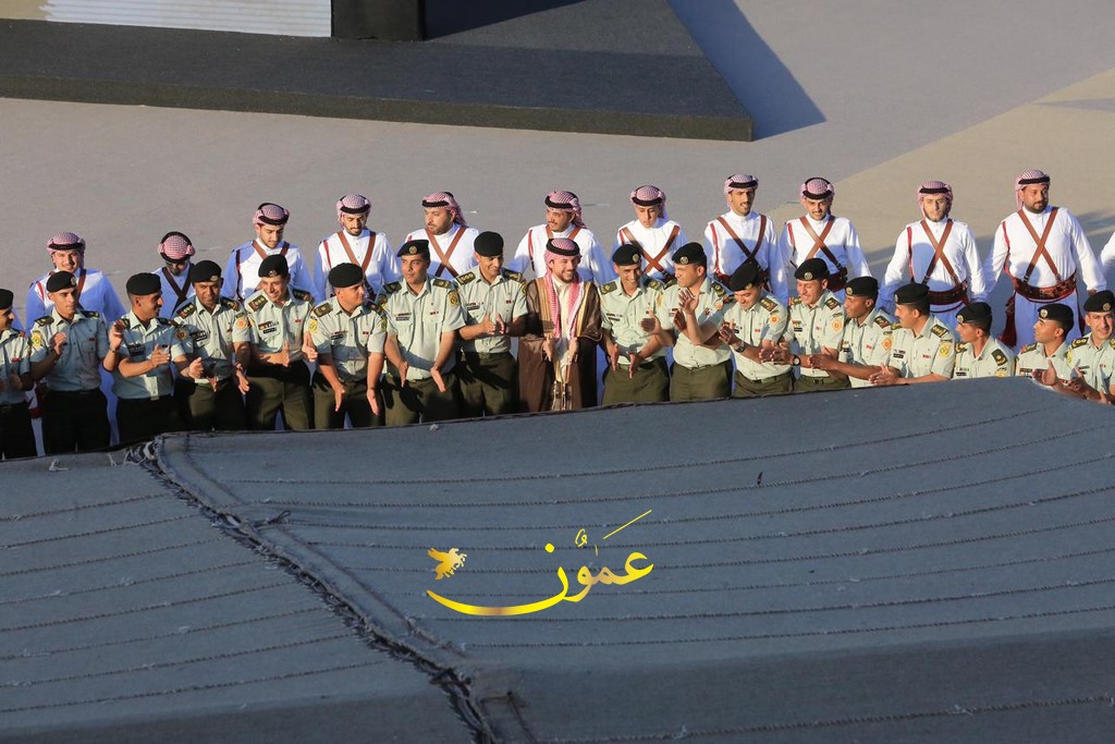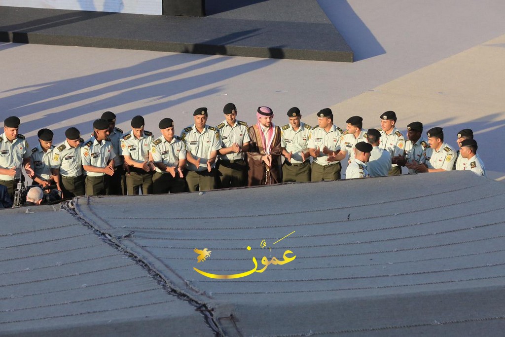 وكان الحفل بدأ بدخول سمو ولي العهد محاطا بمجموعة من أبناء عمومته أصحاب السمو الملكي الأمراء، وعدد من أقارب سموه وزملائه ممن خدموا ويخدمون مع سموه في القوات المسلحة الأردنية – الجيش العربي، وسط أهازيج الفرح التي أدتها فرقة كفر جايز للفنون التراثية.