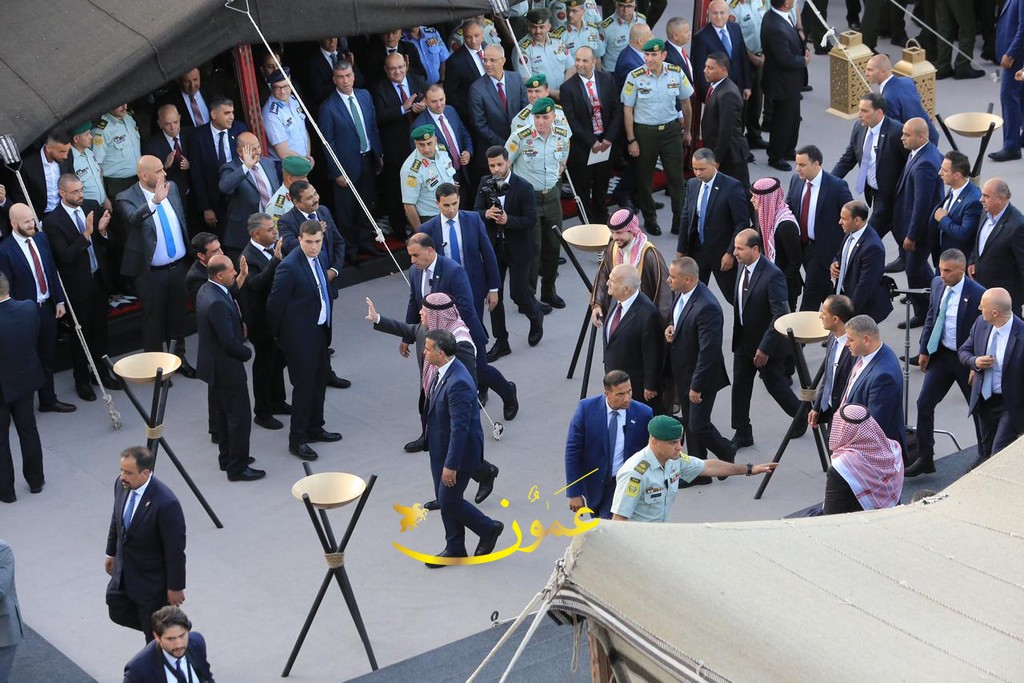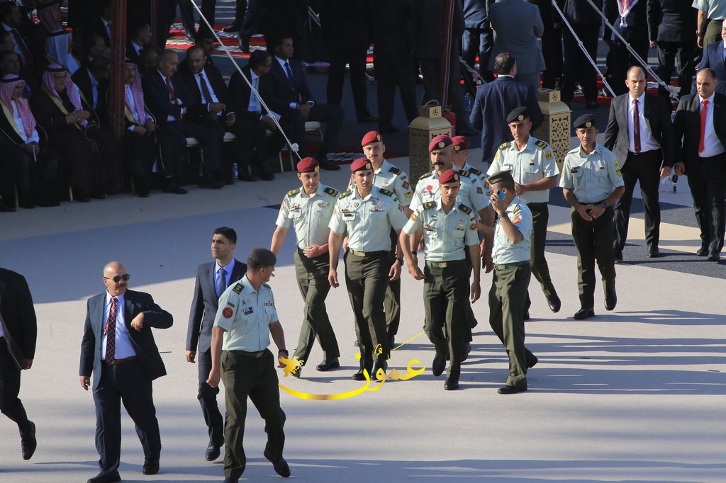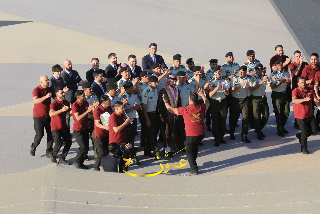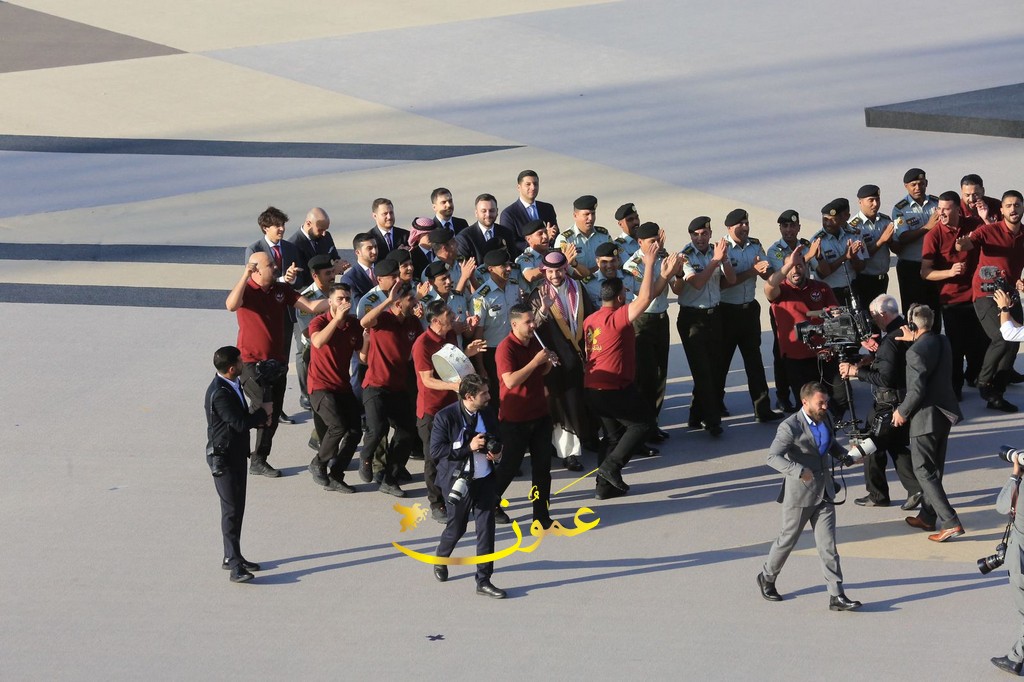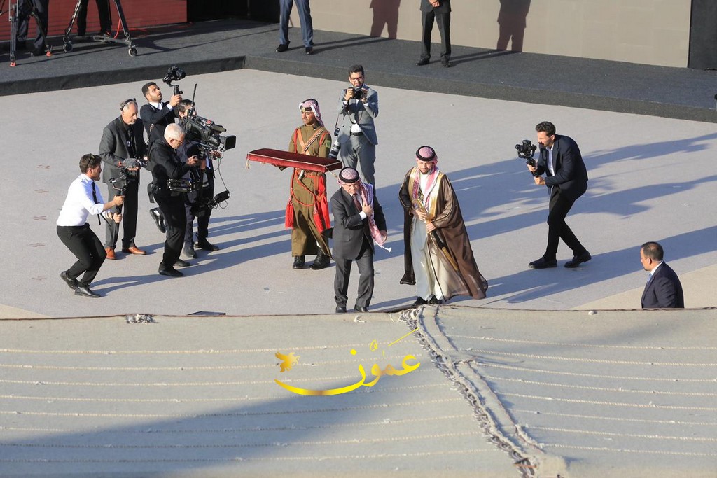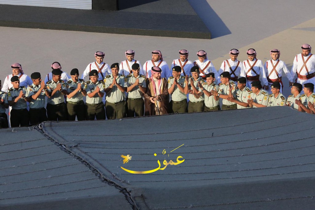وكان الحفل بدأ بدخول سمو ولي العهد محاطا بمجموعة من أبناء عمومته أصحاب السمو الملكي الأمراء، وعدد من أقارب سموه وزملائه ممن خدموا ويخدمون مع سموه في القوات المسلحة الأردنية – الجيش العربي، وسط أهازيج الفرح التي أدتها فرقة كفر جايز للفنون التراثية.