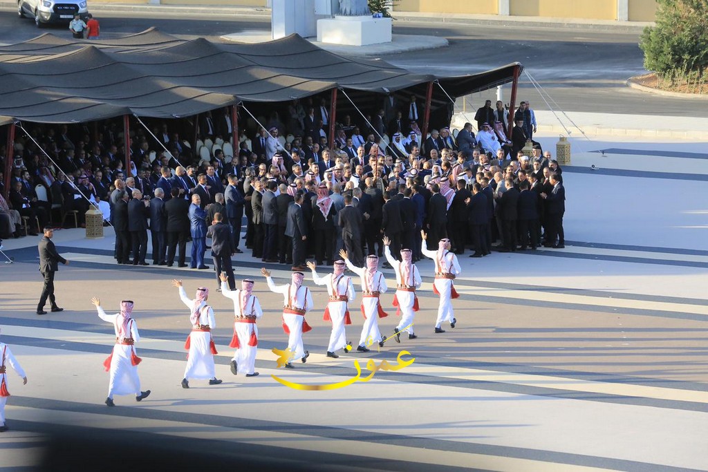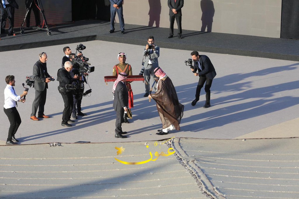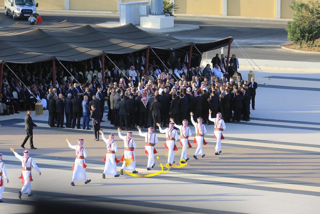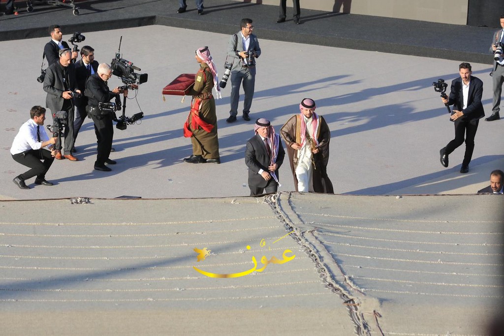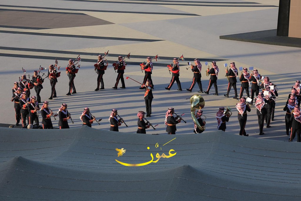 وقدم فريق المشاة الصامتة الذي يتبع لقيادة الحرس الملكي الخاص عروضا خلال الحفل، فيما حلقت طائرات سلاح الجو الملكي في سماء المضارب.