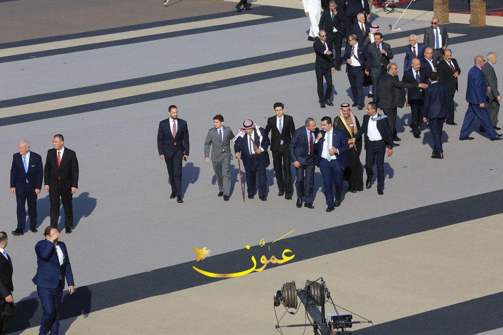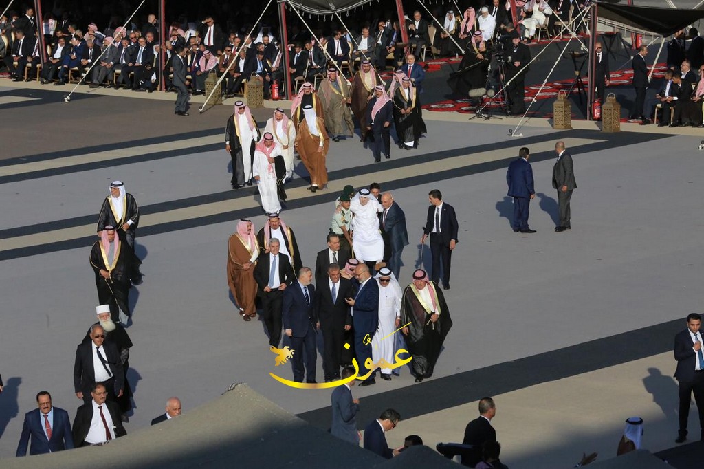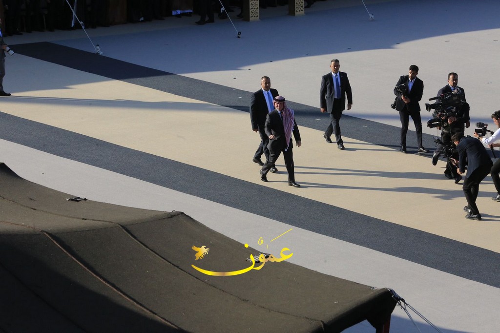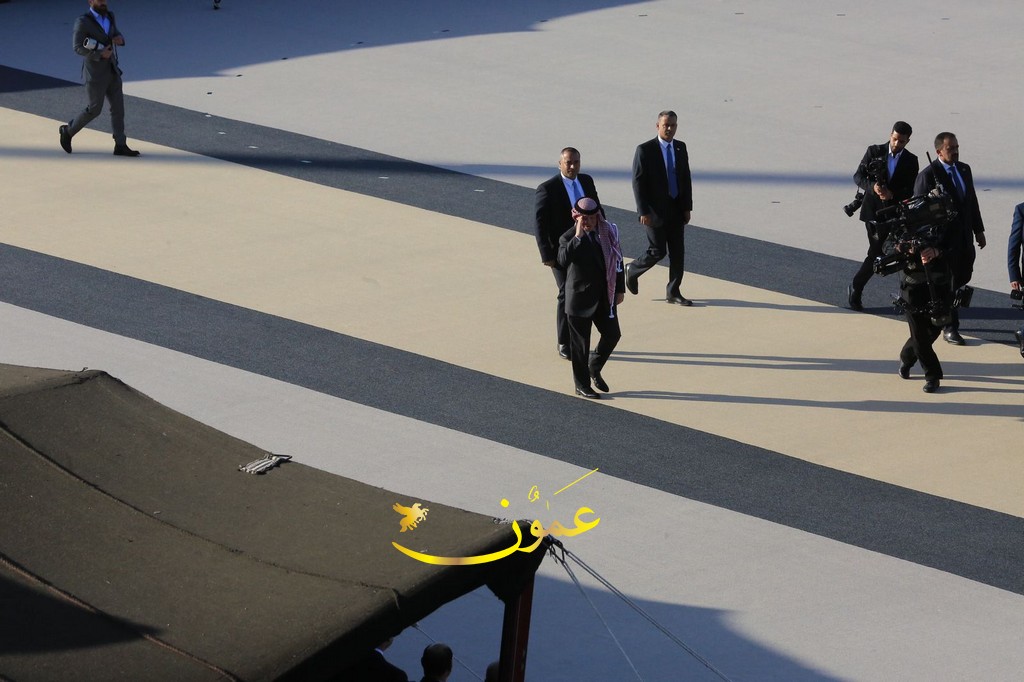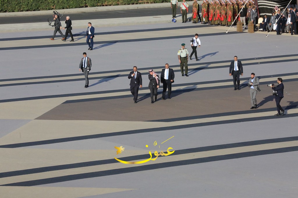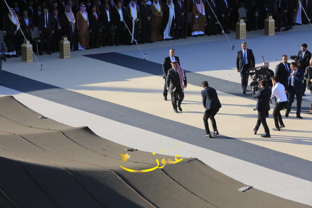 وقدم فريق المشاة الصامتة الذي يتبع لقيادة الحرس الملكي الخاص عروضا خلال الحفل، فيما حلقت طائرات سلاح الجو الملكي في سماء المضارب.