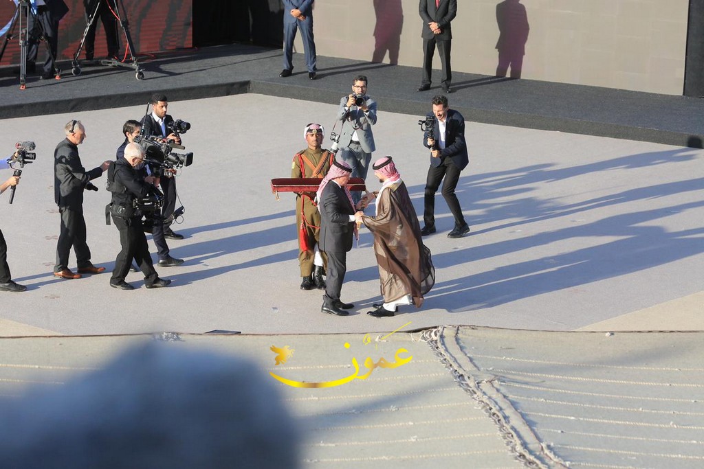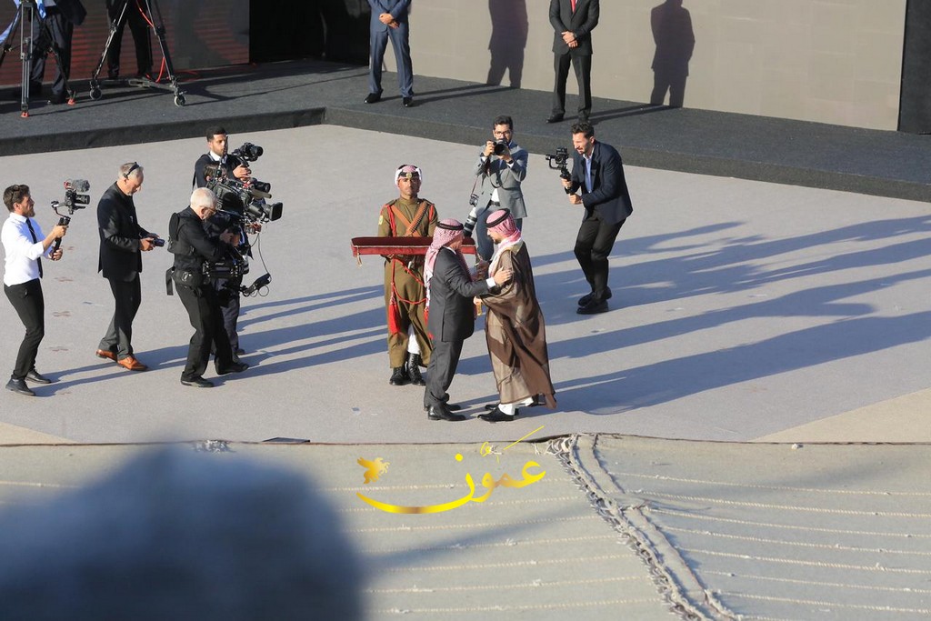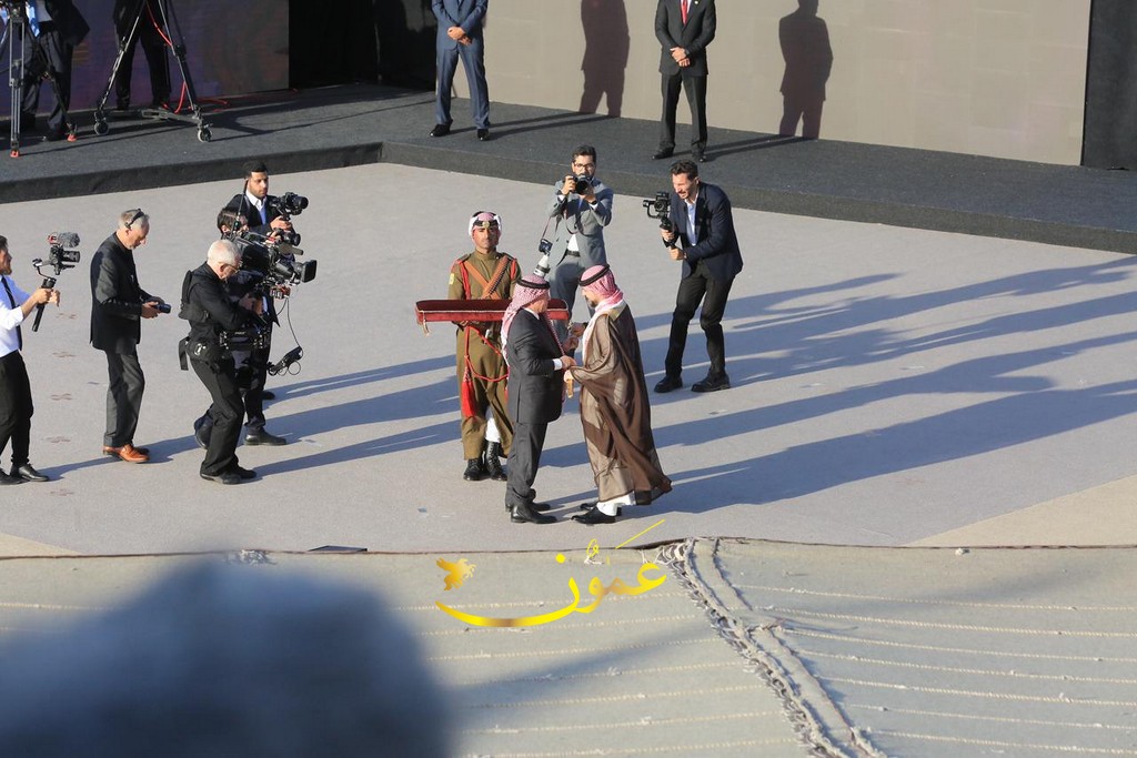وأهدى جلالة الملك، سمو ولي العهد، سيفا من سيوف بني هاشم، كرمز للعدل والدفاع عن الوطن، نُقشت عليه الآية القرآنية "إِن يَنصُرْكُمُ اللَّهُ فَلَا غَالِبَ لَكُمْ "، وهو نسخة عن سيف المغفور له، بإذن الله، جلالة الملك المؤسس عبدالله بن الحسين، طيب الله ثراه، وصُنع من حديد مستخرج من حجارة تحيط بقلعة عجلون.