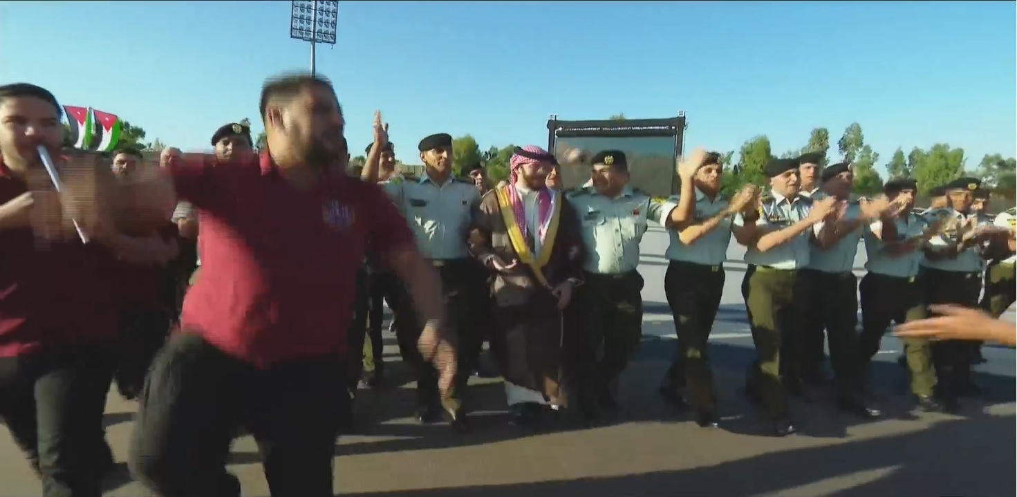 وكان عدد من أصحاب السمو الملكي الأمراء وكبار المسؤولين في الديوان الملكي الهاشمي، في استقبال الآلاف من أبناء المجتمع الأردني من شيوخ ووجهاء عشائر وممثلي فعاليات رسمية وشعبية وحزبية ونقابية وشبابية وإعلامية ومؤسسات مجتمع مدني.