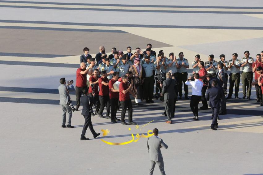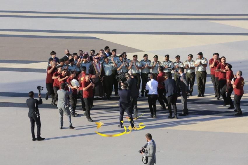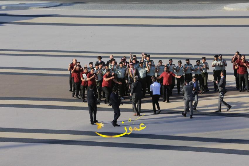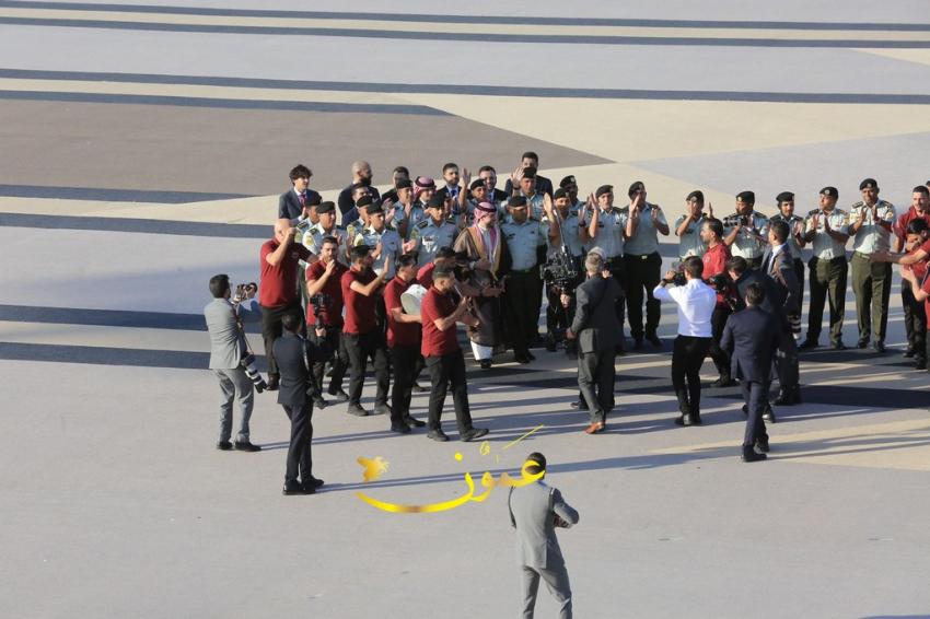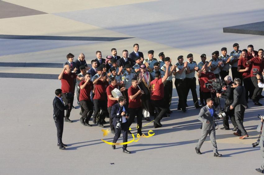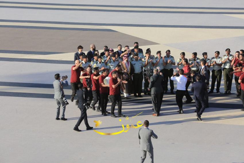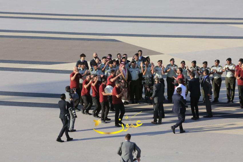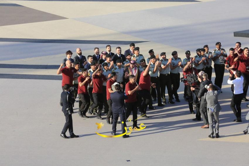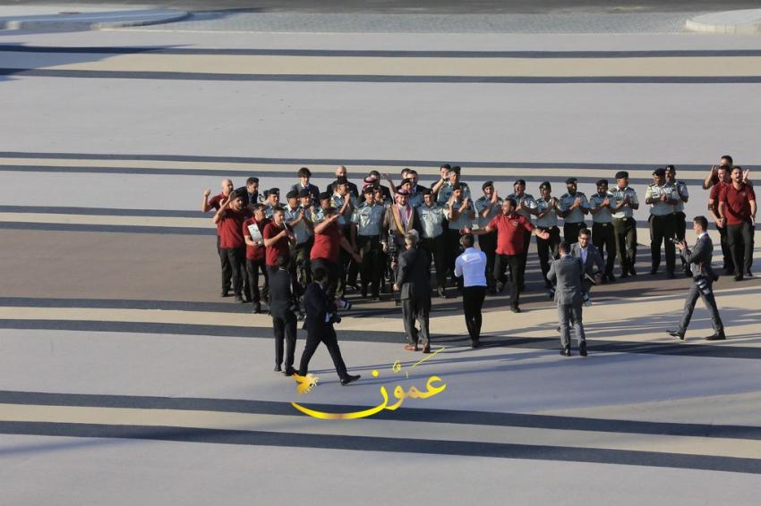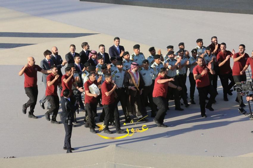 عمون - زفت فرقة كفر جايز للفنون الشعبية، اليوم الأربعاء، ولي العهد، الأمير الحسين بن عبدالله الثاني، لدى وصوله إلى مضارب بني هاشم في الديوان الملكي العامر، برفقة زملائه من رفاق السلاح في القوات المسلحة، تزامنًا مع مائدة العشاء التي يقيمها جلالة الملك عبد الله الثاني ابن الحسين، بمناسبة زفاف سموه.