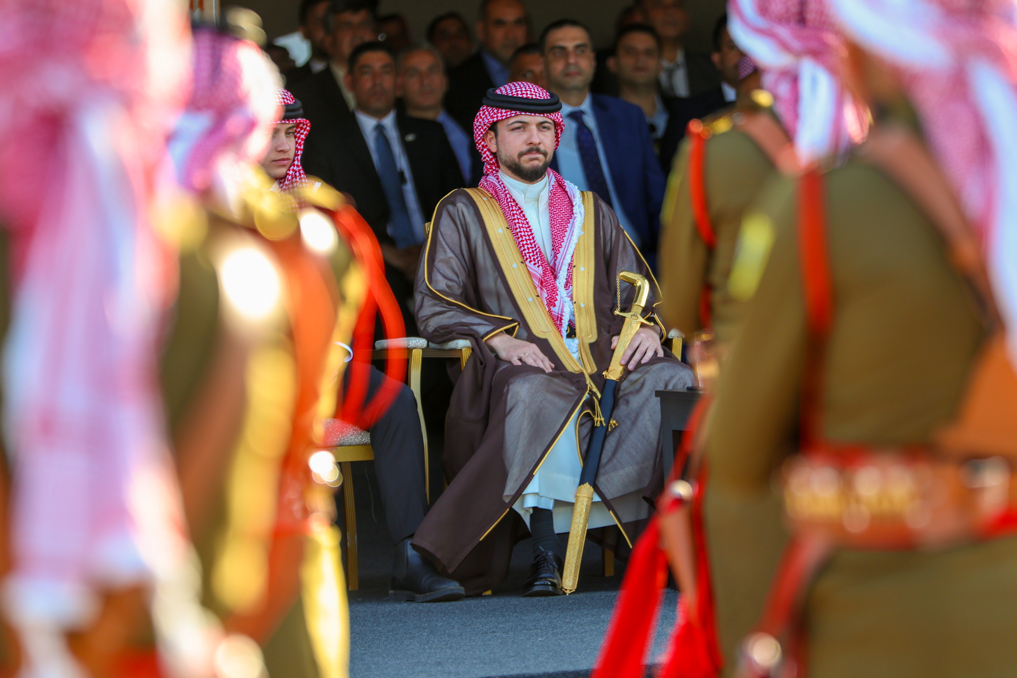 عمون - ارتدى سمو الأمير الحسين بن عبدالله الثاني، ولي العهد، خلال حفل عشاء أقيم الأربعاء، قبل يوم من زفافه، في مضارب بني هاشم في الديوان الملكي الهاشمي، اللباس العربي التراثي.