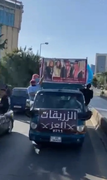 عمون - احتفل شباب عشائر الزريقات اليوم الأربعاء، في العاصمة عمان بزفاف ولي العهد الأمير الحسين بن عبد الله الثاني، بموكب مهيب تجاوز 300 مركبة ومشاركة قرابة 1ألف شاب يمثلون العشيرة من مختلف مناطق المملكة. |