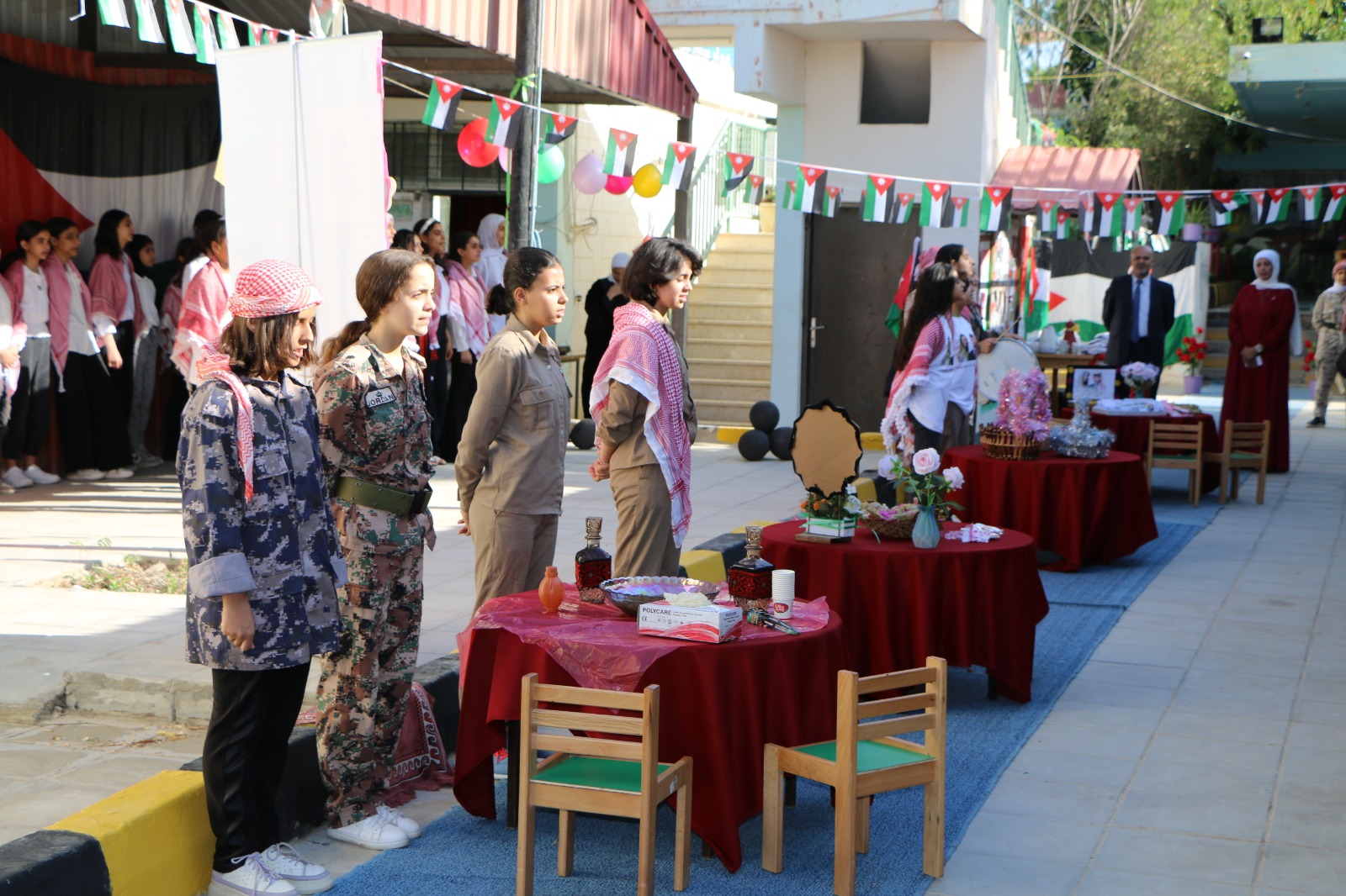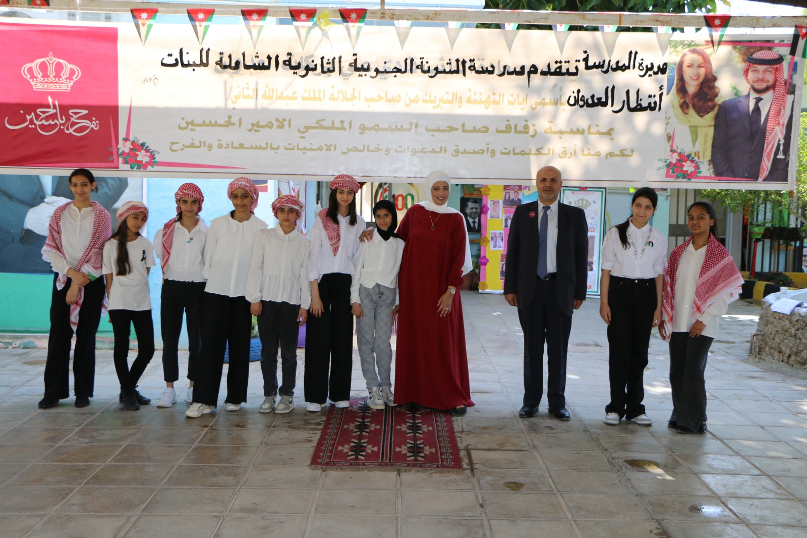 وبدورها قدمت مديرة المدرسة الفاضلة انتظار العدوان التهنئة لقائد البلاد والأسرة الهاشمية وجميع الأردنيين بزفاف ولي العهد والأميرة رجوة آل سيف.