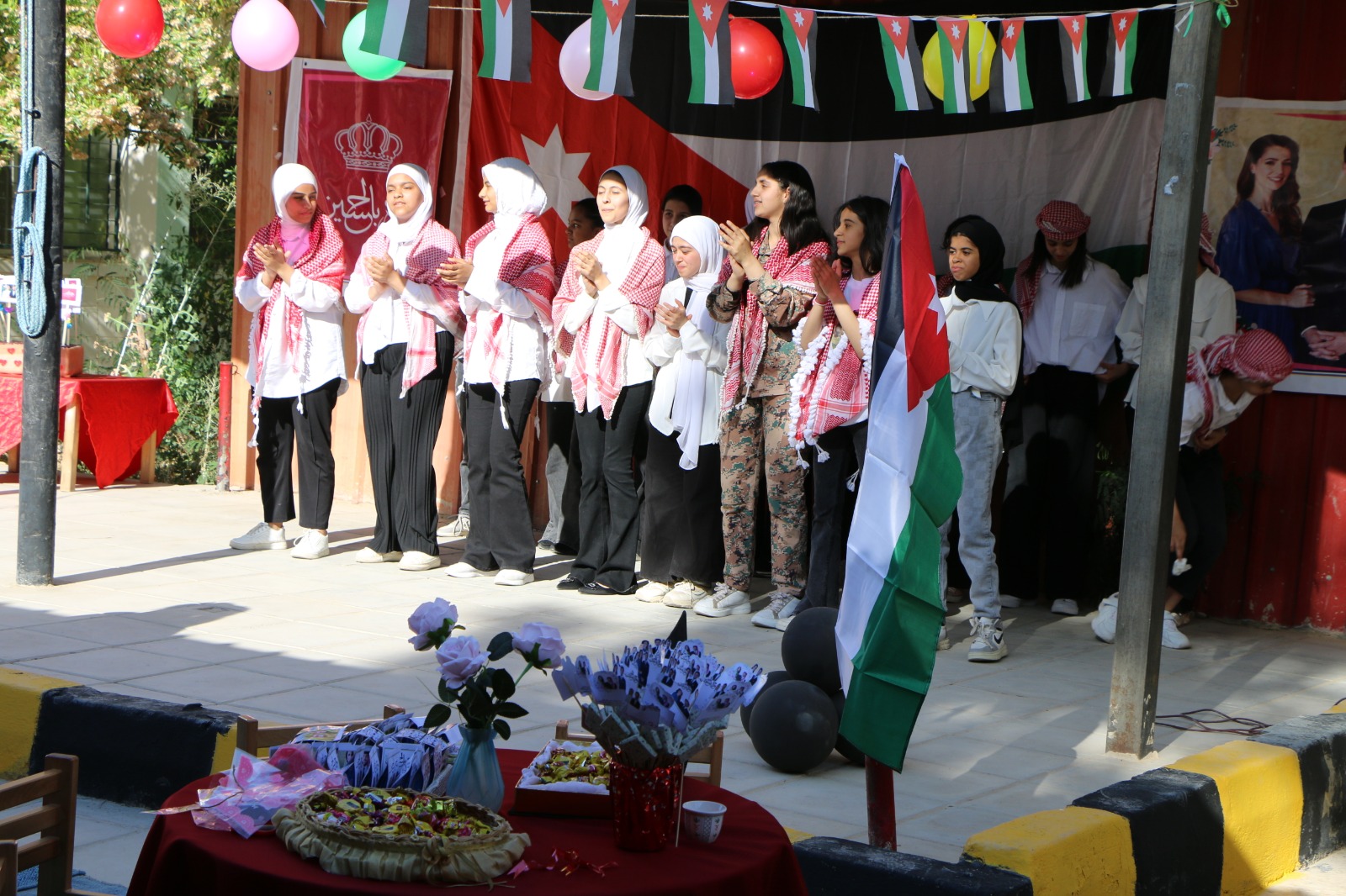 وتضمن الحفل فقرات فنية ،ولوحات استعراضية ،قدمتها طالبات المدرسة عبروا من خلالها عن فرحهم وسرورهم بهذه المناسبة الغالية على قلوب الاردنيين جميعاً.