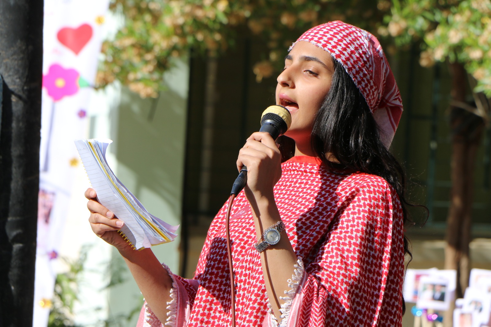 وألقت مجموعة من الطالبات القصائد والأهازيج التي عبروا من خلالها عن سرورهم ومشاركتهم الوطن بفرحته بهذه المناسبة العزيزة .