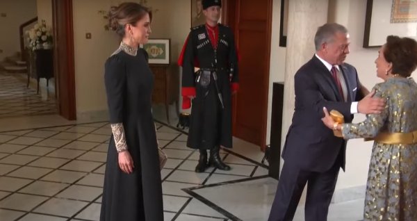 عمون - استقبل جلالة الملك عبد الله الثاني والملكة رانيا العبدالله، أول الواصلين إلى قصر زهران، الأميرة بسمة بنت طلال؛ للمشاركة في حفل عقد قران ولي العهد الأمير الحسين على الآنسة رجوة السيف. |