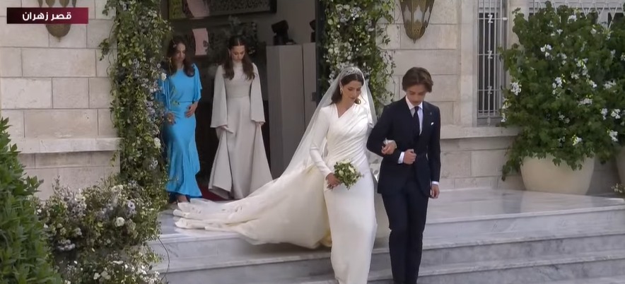 عمون - وصلت الانسة رجوة ال سيف قصر زهران يرافقها الأمير هاشم بن عبدالله الثاني إلى موقع عقد القران، وكل من الاميرتين إيمان وسلمى ابنتا الملك عبد الله الثاني، شقيقتا ولي العهد، الأمير الحسين. |