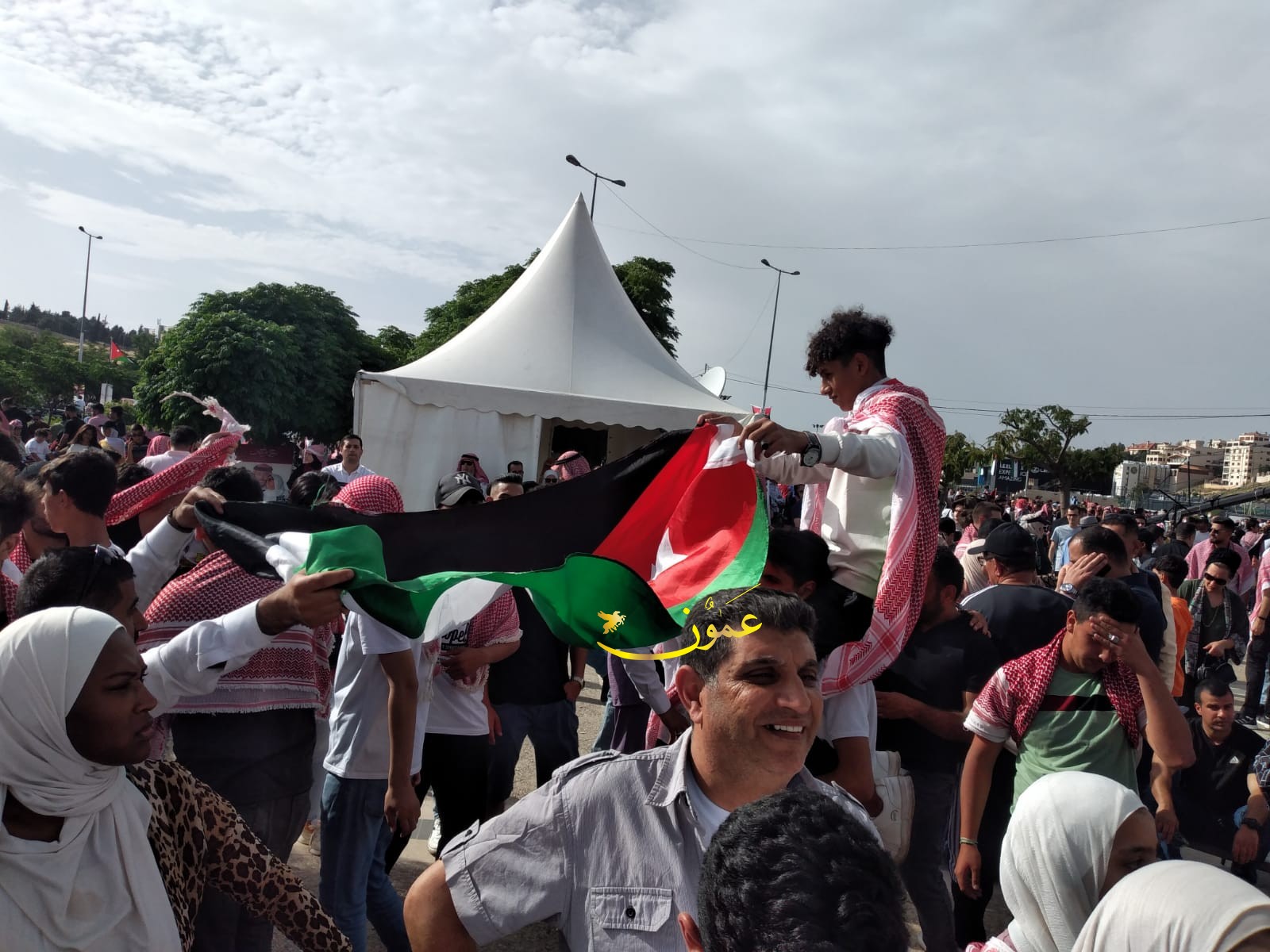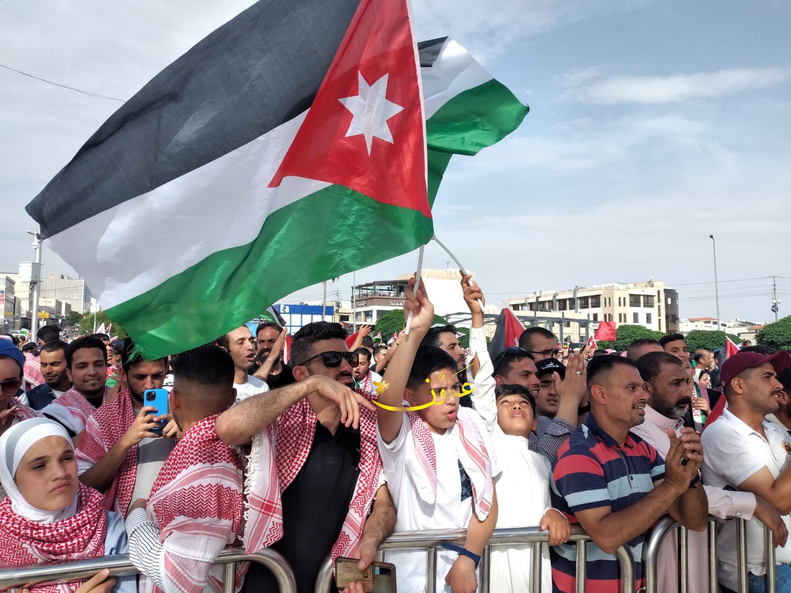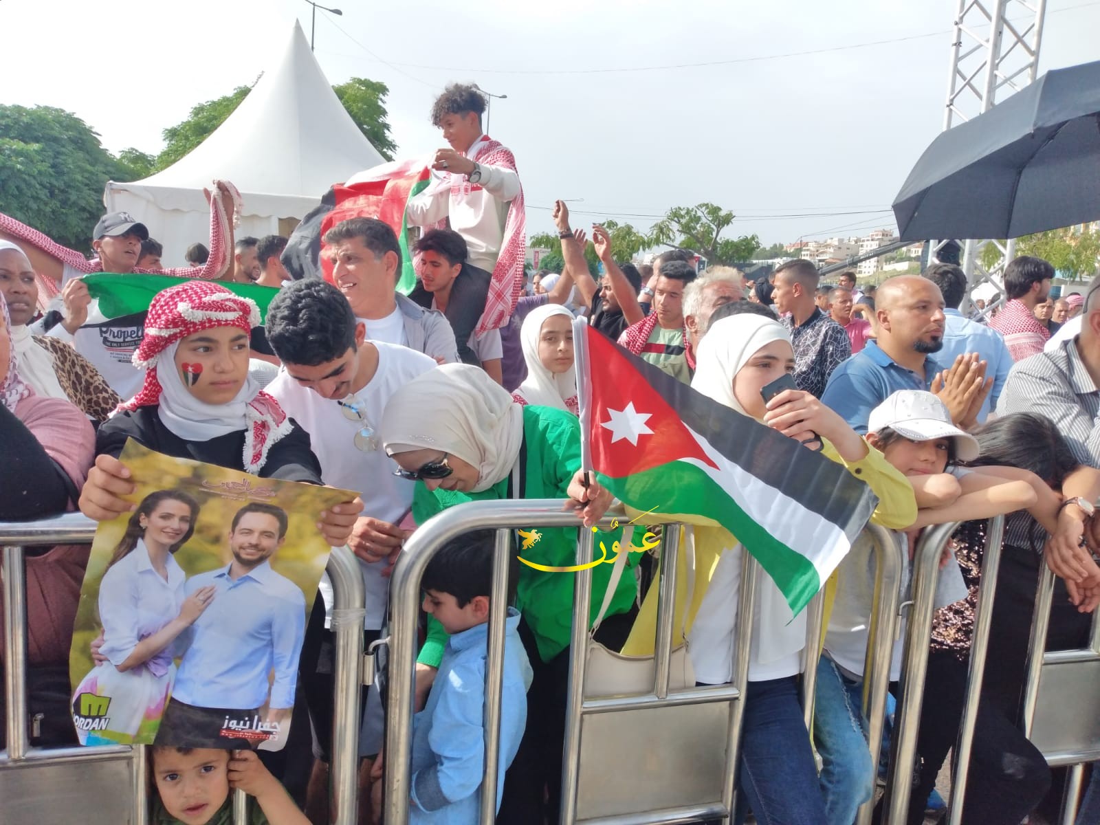 عمون - احتشد أردنيون في شوارع العاصمة عمّان اليوم الخميس، احتفالا بزفاف ولي العهد الأمير الحسين بن عبدالله الثاني على السعودية رجوة السيف. |