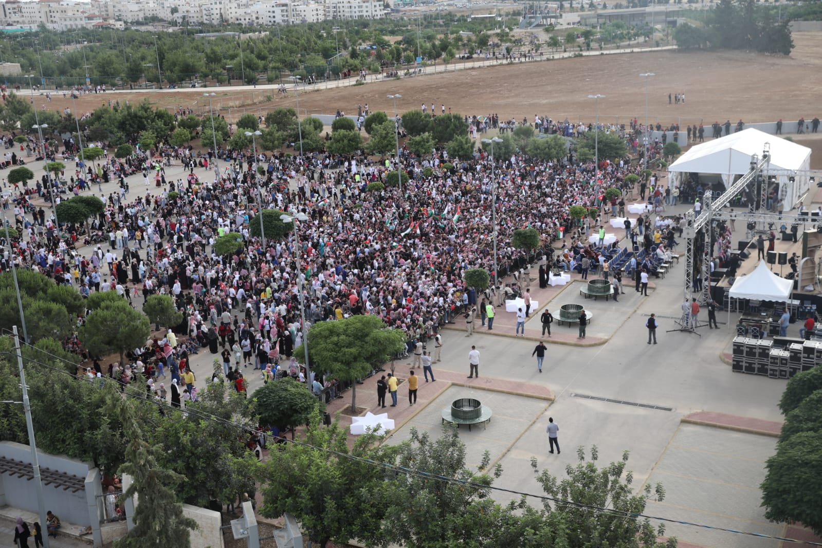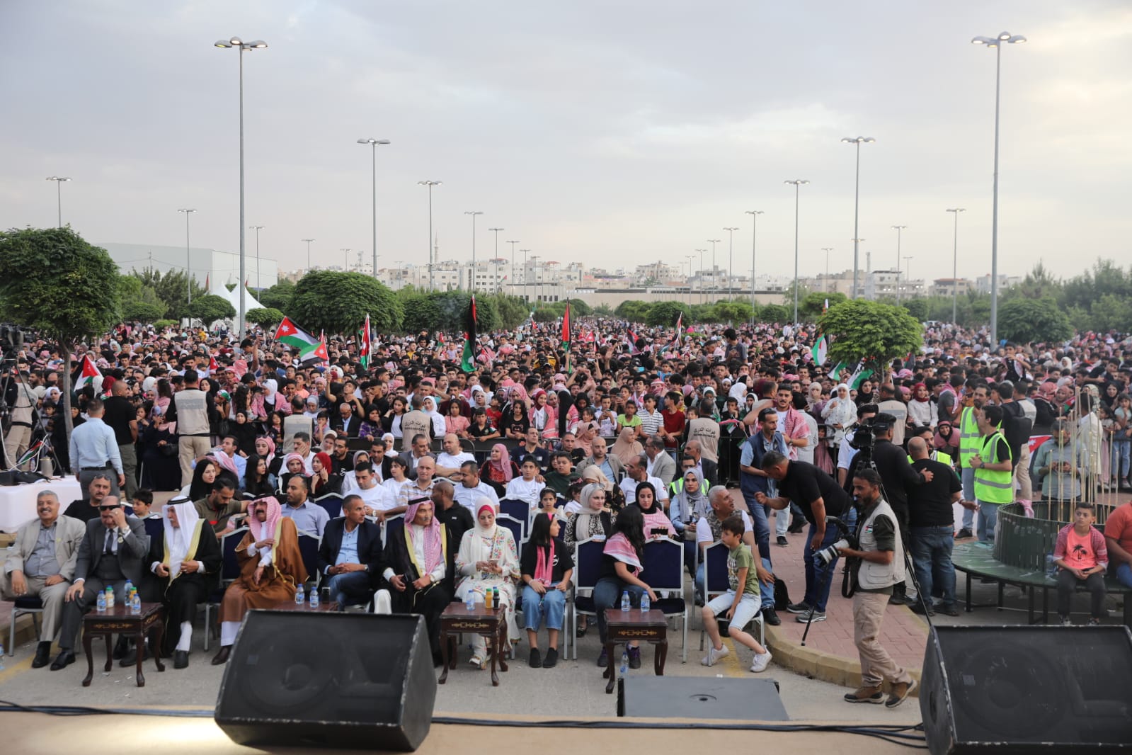 عمون - شهد الحفل الذي اقامته أمانة عمان الكبرى، امس الخميس بمناسبة زفاف ولي العهد سمو الأمير الحسين بن عبدالله الثاني، والاميرة رجوة الحسين، في حدائق الملك عبدالله الثاني ابن الحسين بالمقابلين حضورًا جماهيرًا كبيرًا. |