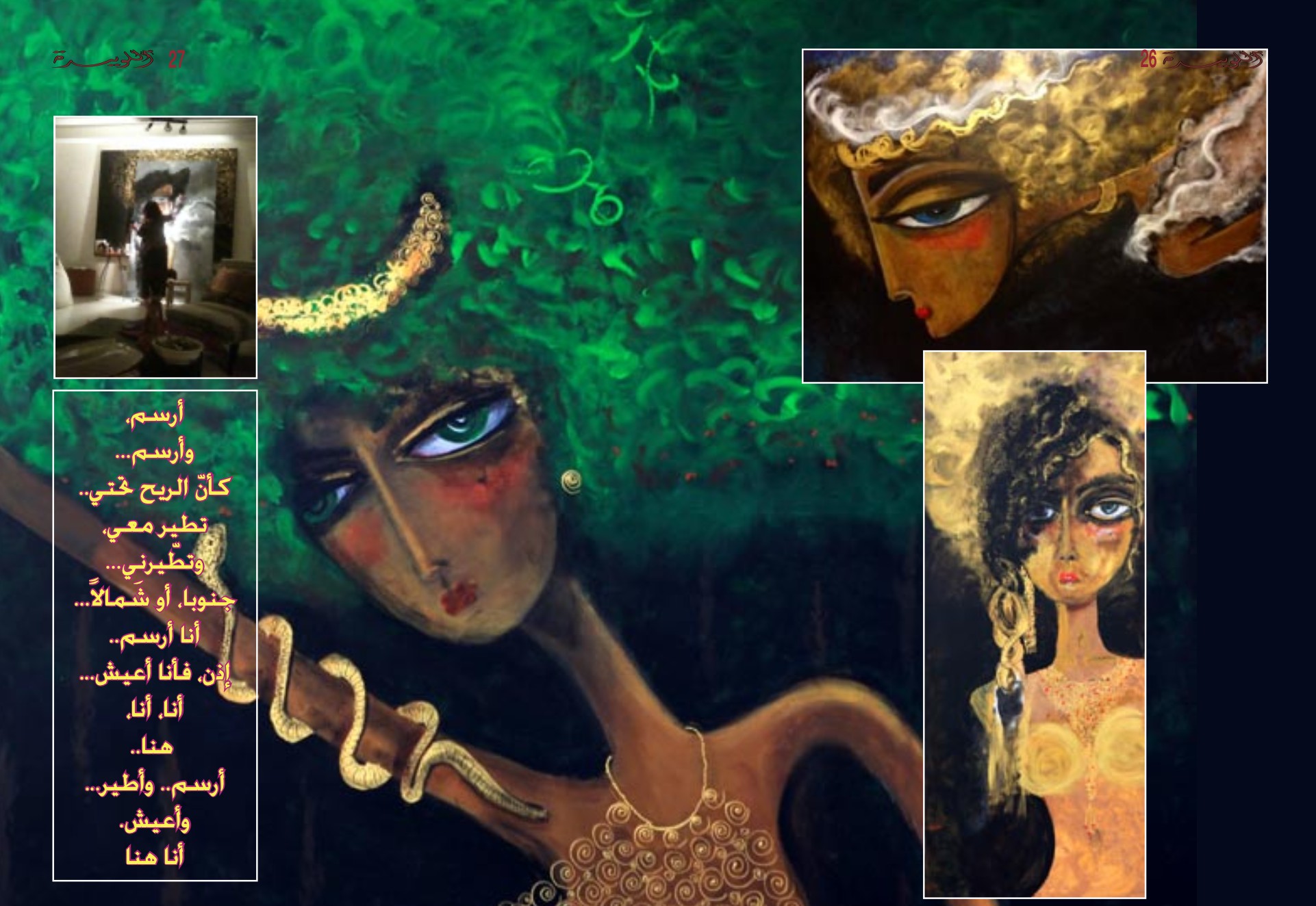 هي لم تبدأ الرسم قبل قليل، مع أنها ستفاجئ الكل، بعد قليل في معرضها المقبل. ُهم يعرفونها ترسم بالماء، وقدمت مئات ”البوسترات“ الوطنية الفلسطينية، ومنها ما هو موجود في أروقة الأمم المتحدة، وصممت عشرات الكتب والمجلات والصحف، ولكنها الآن تقفز من بيتها الصغير في ”اللويبدة“ إلى العالمية، في باريس وأبو ظبي ودبي والقاهرة، وغيرها بالتأكيد...