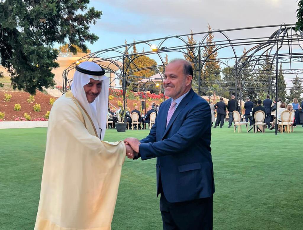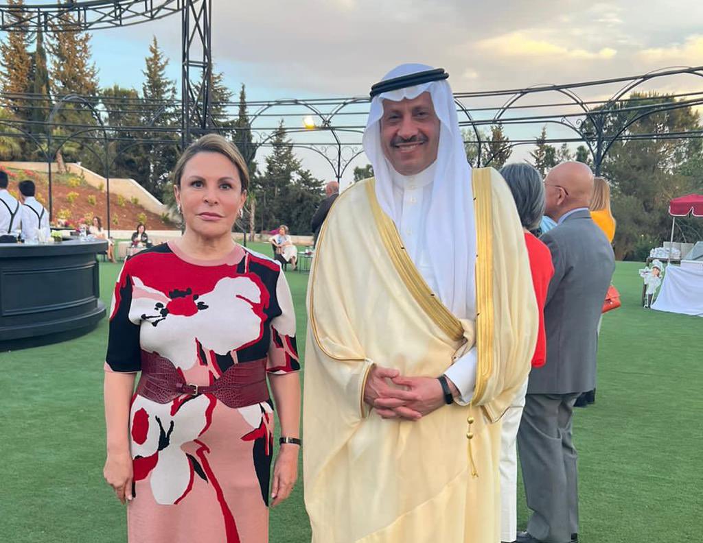 عمون - شارك السفير السعودي في الأردن نايف بن بندر السديري، بحفل لتقديم الشكر لداعمي مؤسسة الأميرة تغريد للتنمية والتدريب. |