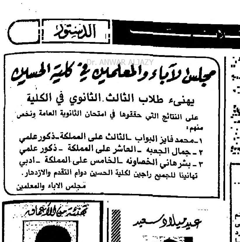 تهنئة للرئيس الخصاونة في التوجيهي عام 198624-06-2023 02:57 PM
