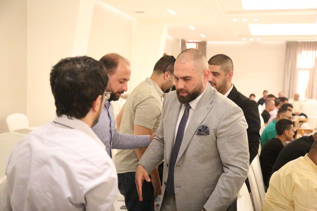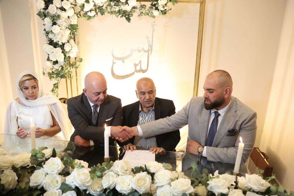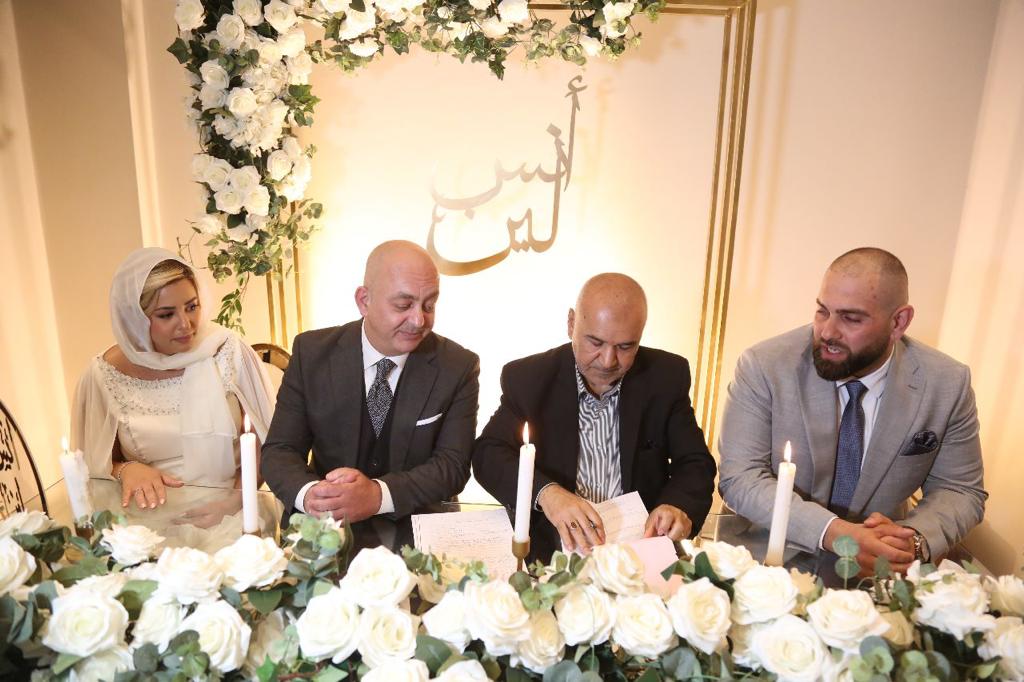 عمون - تقدمت جموع غفيرة من الأهل والأصدقاء لحضور جاهة وإشهار عقد قران الشيف أنس "محمد رمضان" أبو حمد على صاحبة الصون والعفاف الشيف لين طلال أبو الراغب. |