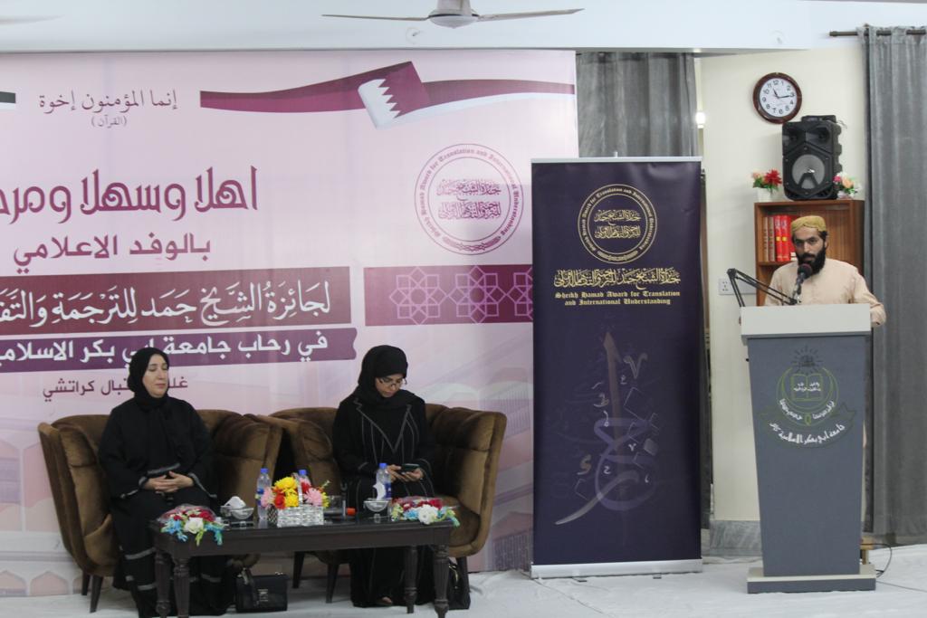 وبدأت فعاليات الجولة بندوة تعريفية عُقدت في جامعة أبي بكر الإسلامية، الجامعة الوحيدة -من بين ما يزيد على ألفي جامعة بباكستان- التي تدرّس جميع تخصصاتها باللغة العربية.