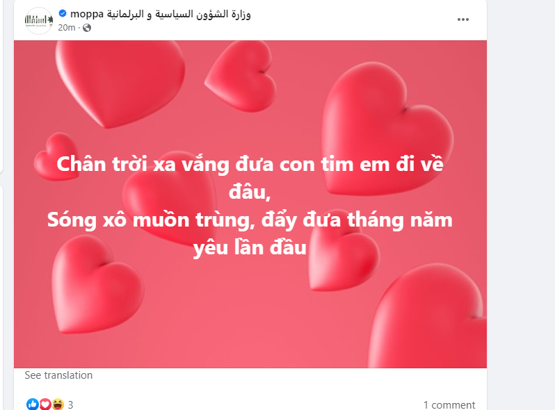 عمون - تعرضت مساء الأحد، صفحة وزارة الشؤون السياسية والبرلمانية، على موقع التواصل الاجتماعي فيسبوك لعملية اختراق. |