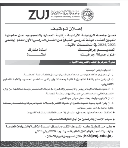 جامعة الزيتونة بحاجة لتعيين اعضاء هيئة تدريسية