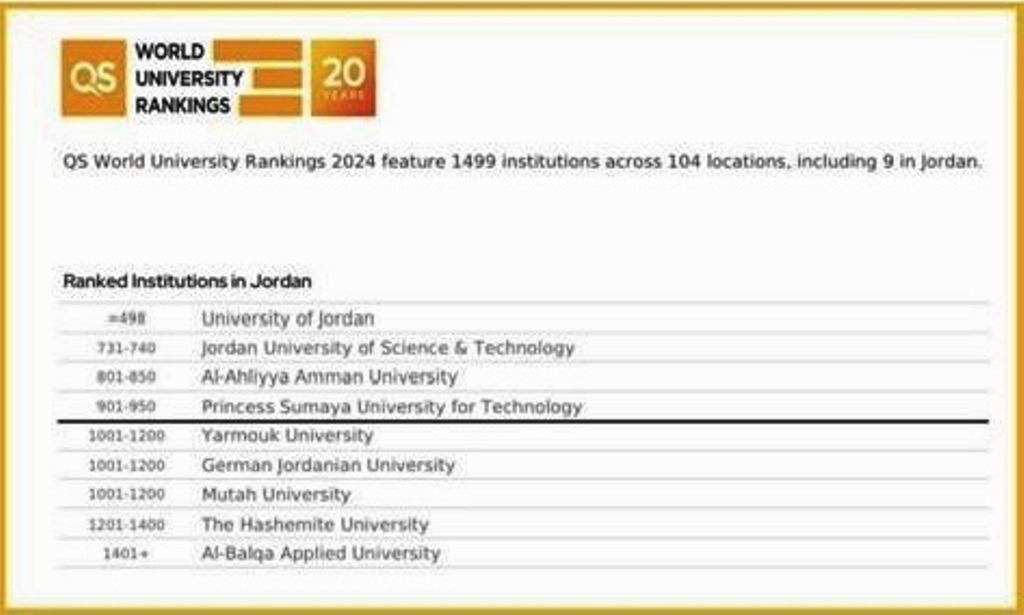 الكل بات يعلم أن أهم التصنيفات للجامعات هي: "كيواس" و"التايمز" و"شنغهاي"... والكل تابع نتائج جامعاتنا الاردنية المتقدمة في تصنيف الكيواس 2024 والذي صدر مؤخرا حيث صنفت أربع جامعات أردنية من بين أفضل ألف جامعة في العالم، كانت جامعة عمان الاهلية في المرتبة الثالثة محليا بعد الاردنية والعلوم والتكنولوجيا وحصلت على المرتبة 801-850 عالميا.