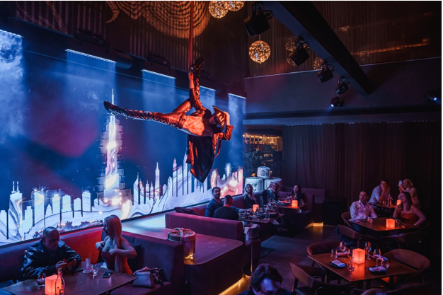 ويضم تابو صالات متنوعة تقدم عروضاً فنيةً ومسرحية عديدة توفر للضيوف تجربة تناول طعام ترفيهية راقية وجديدة كلياً، كما ينفرد بتقديم مشروبات معدّة بعناية وأسلوب خدمة استثنائي. ويعدّ الترفيه والإبداع عنصرين أساسيين في فلسفة تابو ليضمن للضيوف خوض تجربة فريدة في كل زيارة.