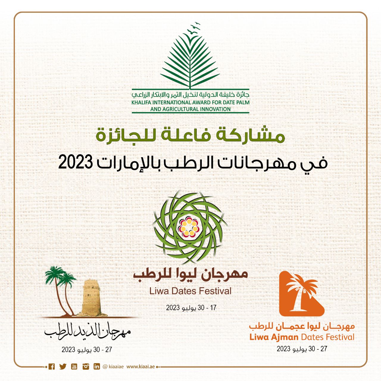 مشاركة فاعلة لجائزة خليفة في مهرجانات الرطب بالإمارات 2023