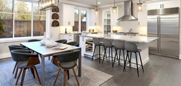 استخدم خزائن باللون الأبيض لمطبخ أمريكي كلاسيكي ومشرق الخزائن البيضاء تعطي إحساسًا بالنظافة والنضارة، وتجعل المطبخ يبدو أكثر اتساعًا.