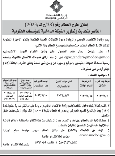 عطاء صادر عن وزارة الاقتصاد الرقمي والريادة