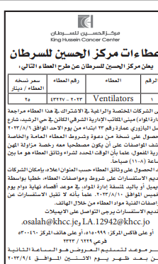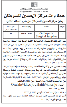 عطاءات صادرة عن مركز الحسين للسرطان