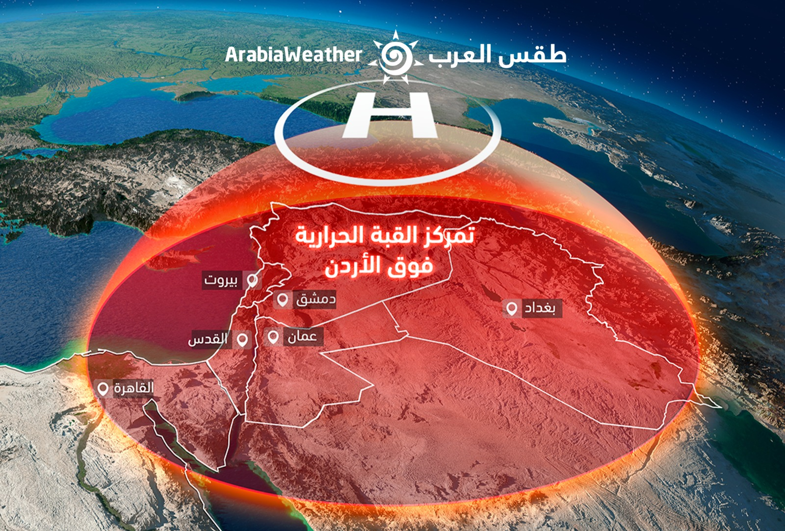 عمون - تتأثر بلاد الشام بما فيها الأردن اعتبارًا من السبت القادم ولِعدّة أيام بظاهرة القبّة الحرارية والتي يتسبب بها تمركز المرتفع العربي الموسمي فوق المنطقة، ومدعوماً ذلك بِمنخفض جوي حراري على السطح قادماً من الشرق ومرفقاً بكتل هوائية شديدة الحرارة، هذه العناصر الجوية ستعمل على سيادة أجواء حارة لأيام عديدة في المملكة.