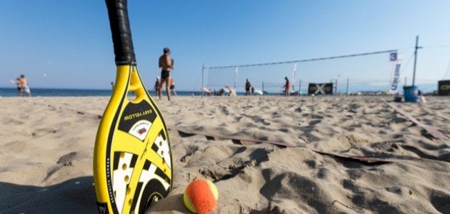 2. الكرة: تستخدم كرة التنس الشاطئية كرة خاصة تصمم للعب على الرمال وهي أكبر وأخف من الكرة التي تستخدم في التنس التقليدي.