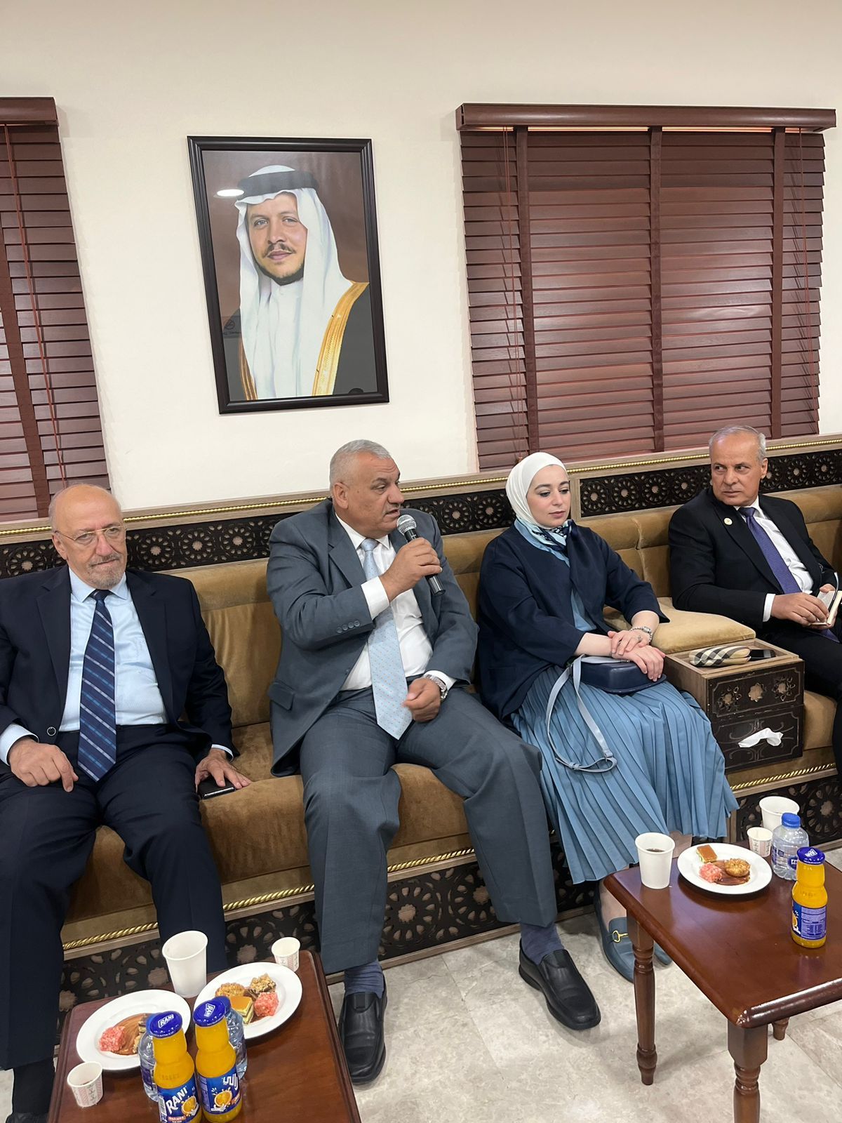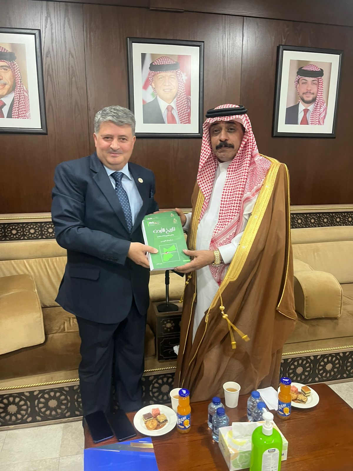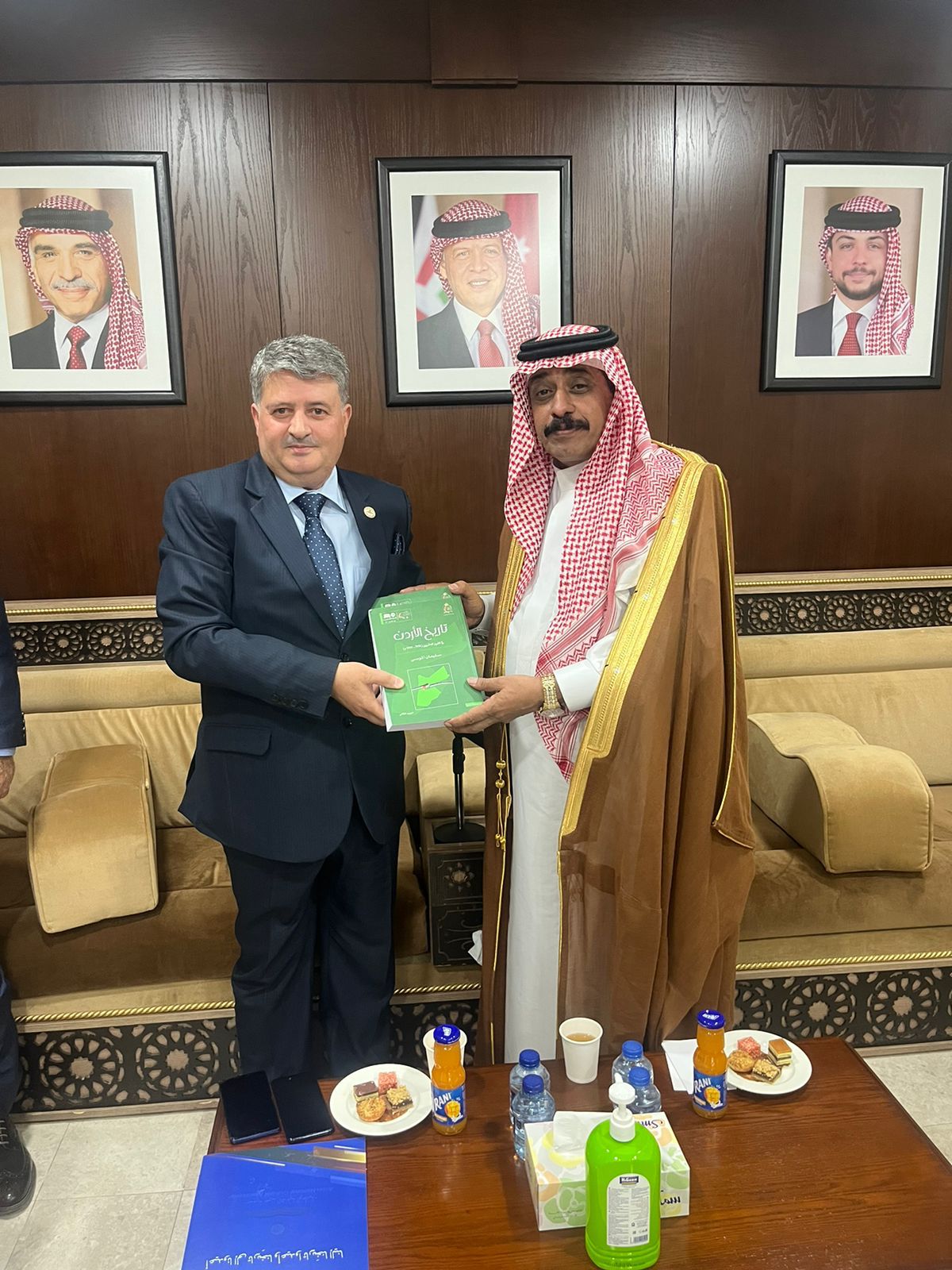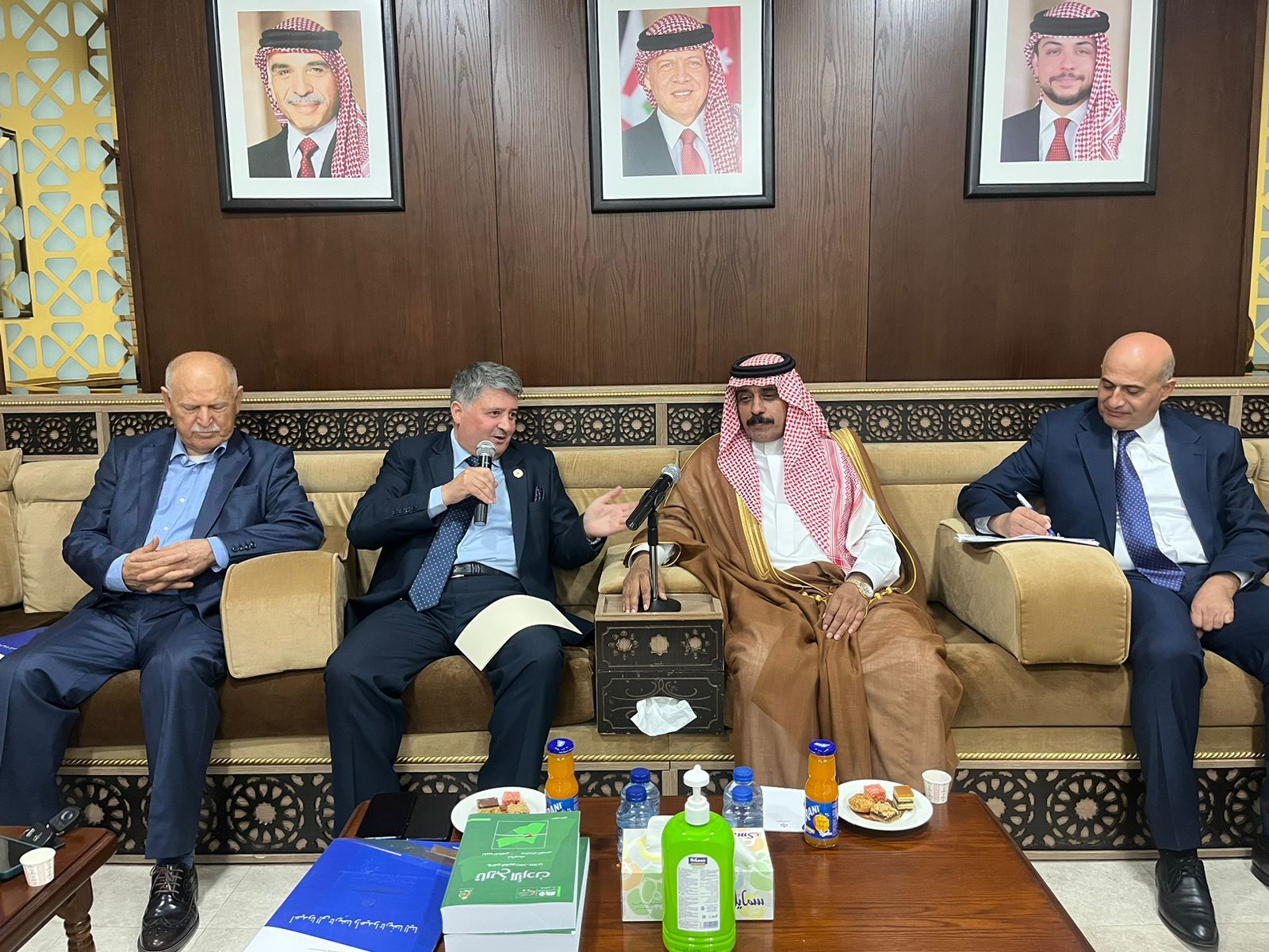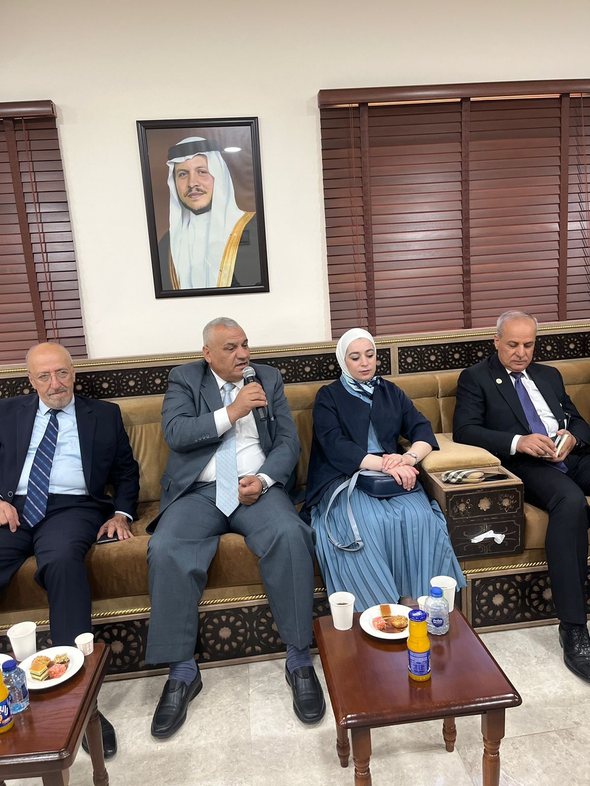 وبدوره وبعد أن عرَف على أعضاء الوفد قدم اسعد ابراهيم ناجي العزام رئيس الهيئة الإدارية الشكر والتقدير للحجايا مستشار جلالة الملك لشؤون العشائر على إتاحته هذا اللقاء لمجموعة ممثلة عن أعضاء هيات الجمعية هذا اللقاء الذي تعول عليه الجمعية كثيراً وتبني عليه آمالاً كبيرة نظراً لإرتباطه بشكل مباشر بلجنة المسار الأردني الرسمي التي توثق دور (القيادة،الحكومات،الجيش العربي الأردني،والأجهزة الأمنية) مستعرضاً بشكل مختصر مسيرة الجمعية منذ تأسيسها عام 2018 ومشروعها الوطني الريادي الذي يوثق دور مكونات الشعب الأردني كافة (الوطني) ببناء الأردن (والقومي) بالدفاع عن قضايا أمتنا العربية وفي مقدمتها القضية الفلسطينية ودعم حركات التحرر العربية منذ عام 1898 بداية ظهور الفكر الصهيوني وتوجه أنظار القوى الدولية إلى فلسطين لإقامة وطن قومي للهيود على أرضها.