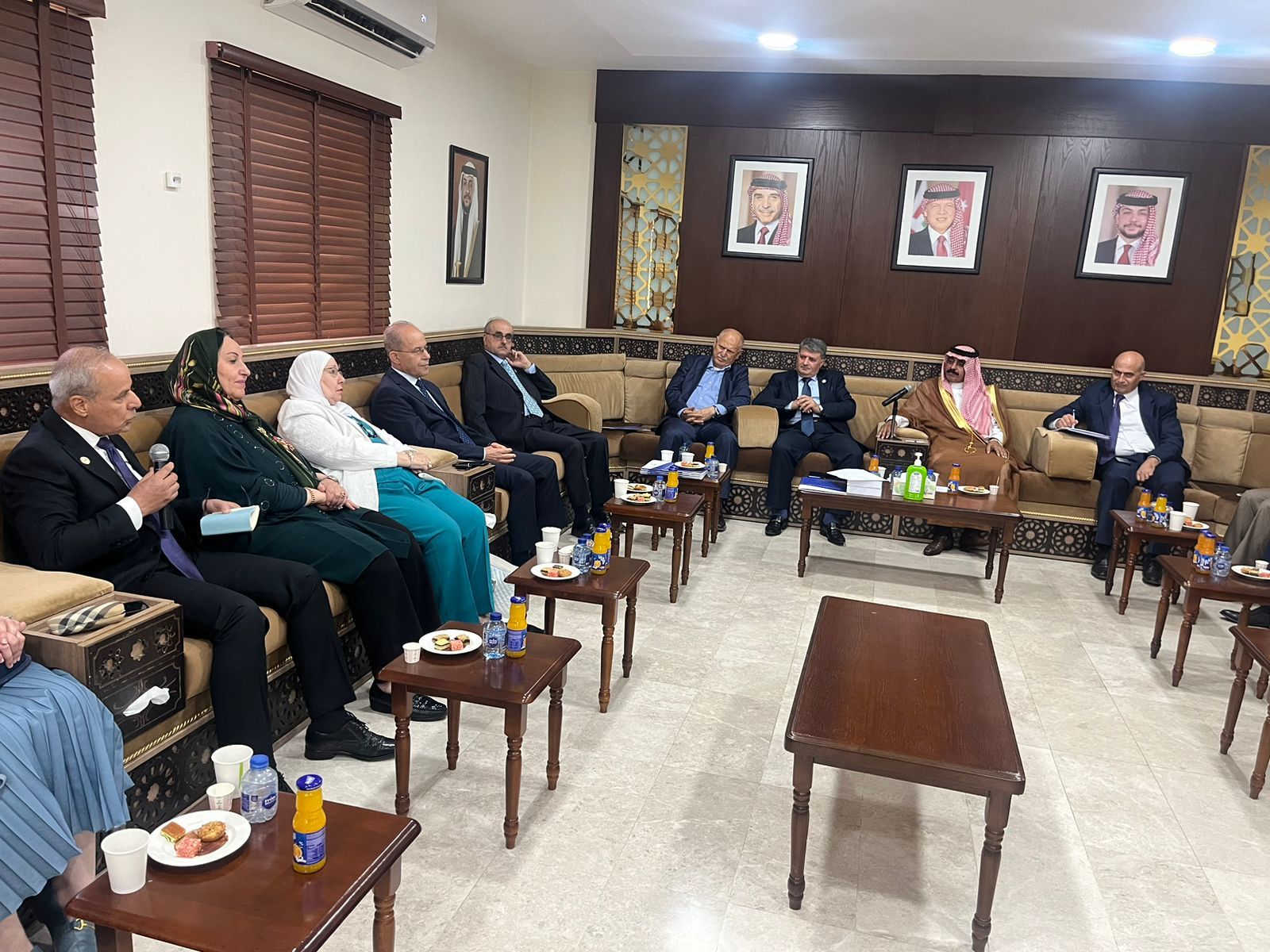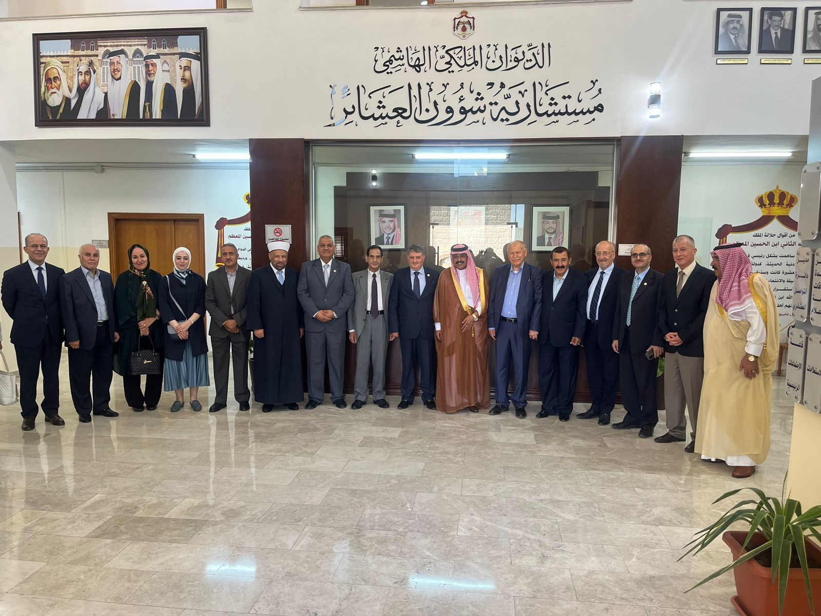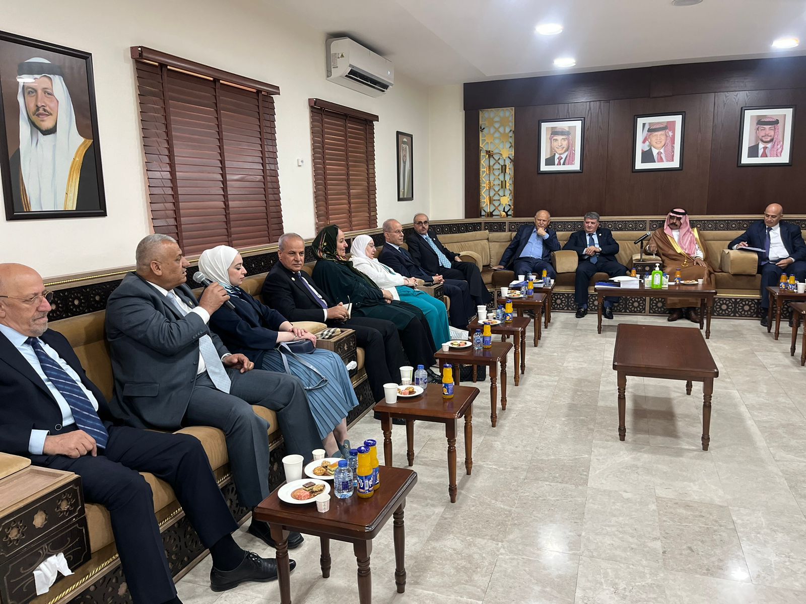 عمون - التقى مستشار جلالة الملك لشؤون العشائر الدكتور عاطف الحجايا، اليوم الأربعاء رئيس وأعضاء وفد جمعية عَون الثقافية الوطنية.
