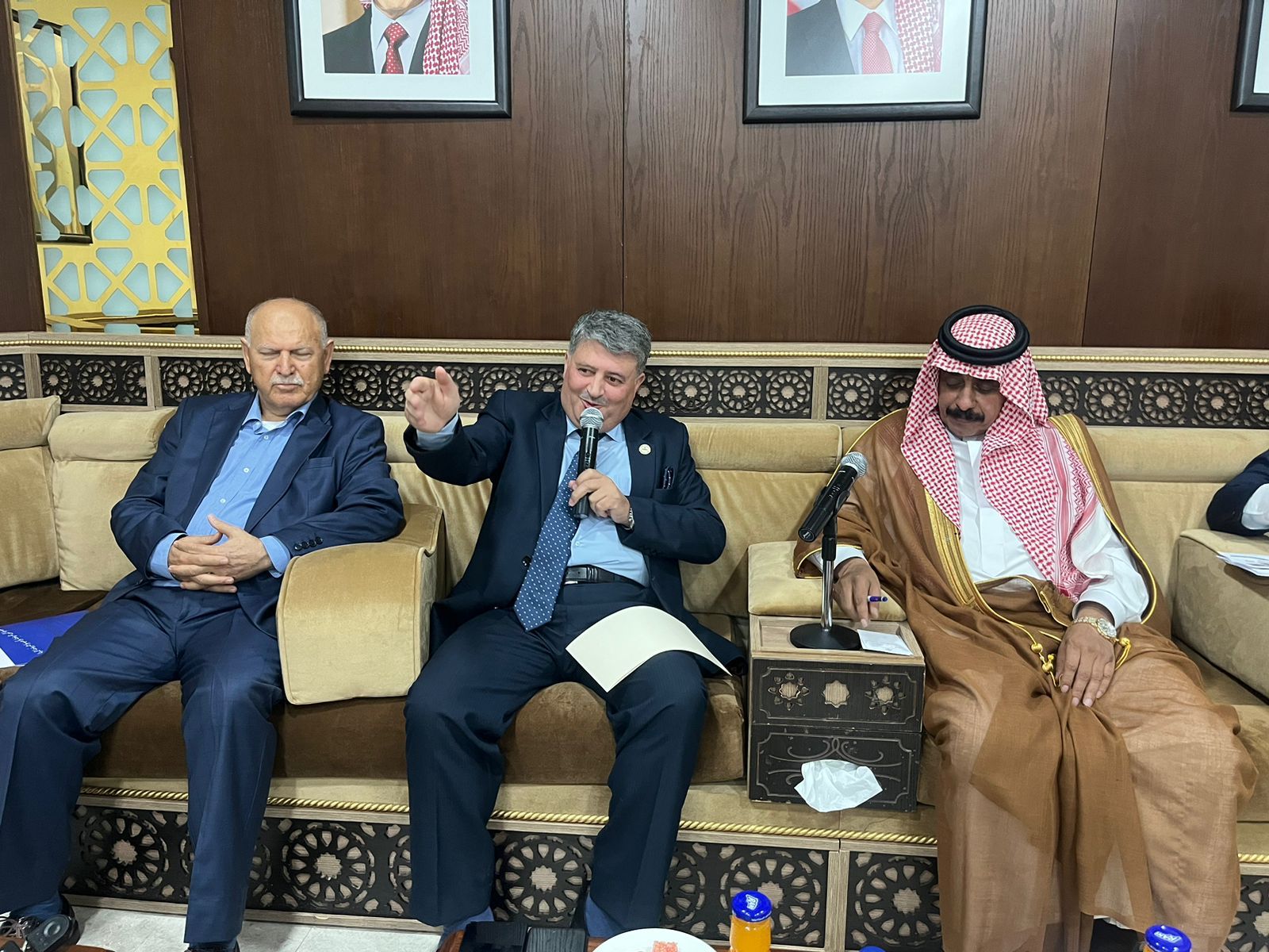 كما أشاد العزام بالأفق الواسع والنظرة الثاقبة والواقعية والمرونة التي يتمتع بها معالي الدكتور عاطف الحجايا مستشار جلالة الملك لشؤون العشائر ،وهذا ما يؤسس لبناء علاقة قوية صلبة قائمة على أساس متين مبني على الثقة والجدية والمثابرة تدعمها الكفاءة والخبرة والعلم والمعرفة والمهنية التي يتصف بها.هذا إلى جانب ما يمتلكه أعضاء هيئات الجمعية من خبرات على المستوى المحلي والإقليمي والدولي،التي نسعى بكل جدية لتوظيفها وتسخيرها خدمةً لوطننا وقيادتنا الهاشمية المظفرة ومؤسساتنا العامة والخاصة على إختلافها وأمتنا العربية.