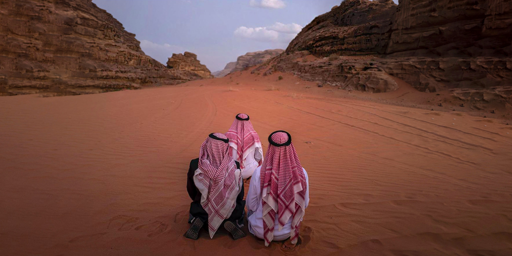 عمون - نشرت الأميرة غيداء طلال اليوم الجمعة على منصة "X" (تويتر سابقًا)، صورة بعدسة المصور العالمي محمد محيسن لثلاثة أشخاص يقوموا بتأدية الصلاة في وادي رم. |