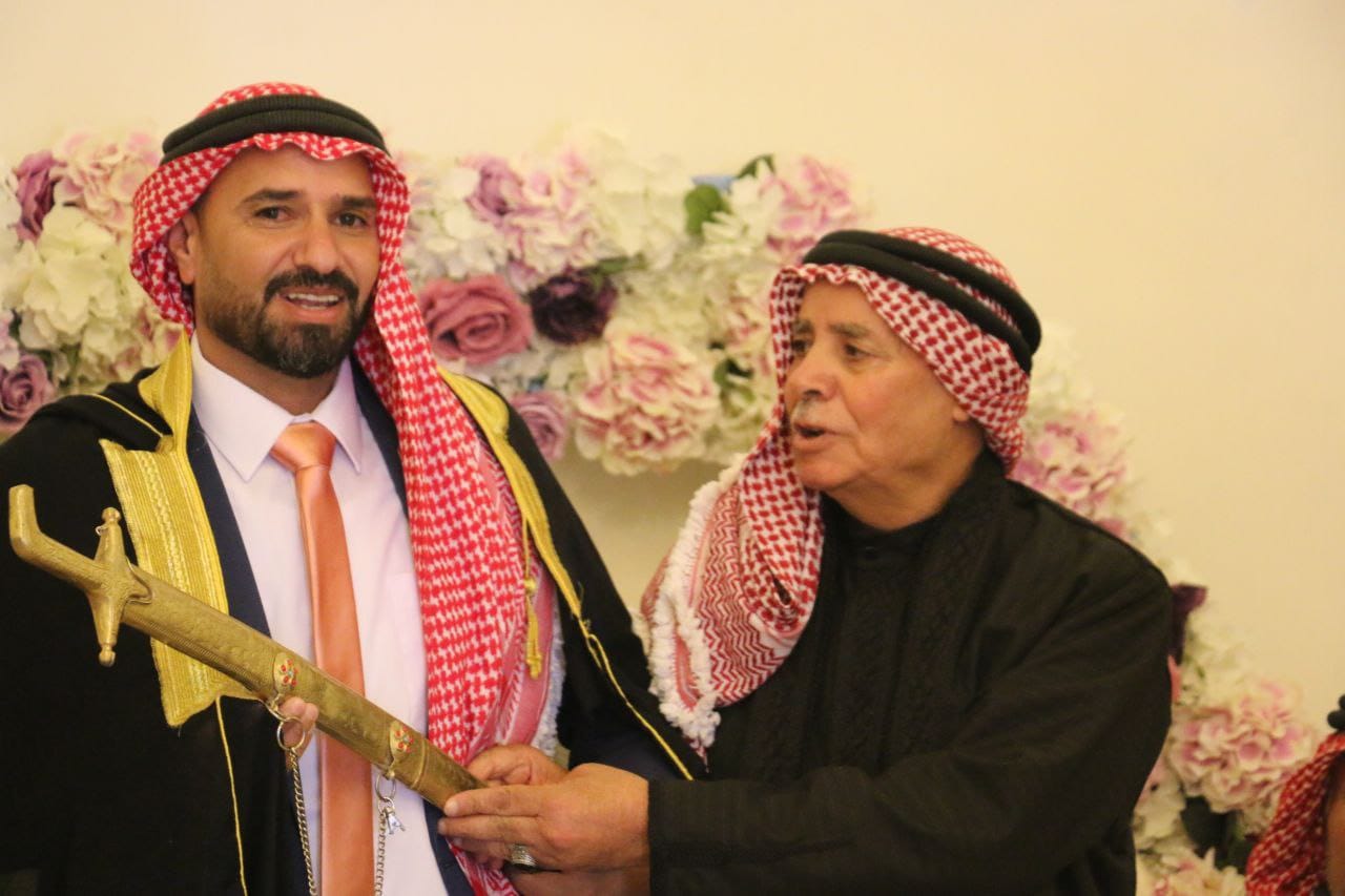وطَلَبَ عَنْ أَهْلِ اَلْعَرِيسِ وَالِدَهُ سَعَادَةَ اَلشَّيْخِ صَقْرَ مُحَمَّدْ اَلْكَرِيمَيْنِ "أَبُو مُحَمَّدْ"، فِيمَا أَجَابَ عَنْ أَهْلِ اَلْعَرُوسِ الشيخ حمد رزق الحوامدة ابو انس.