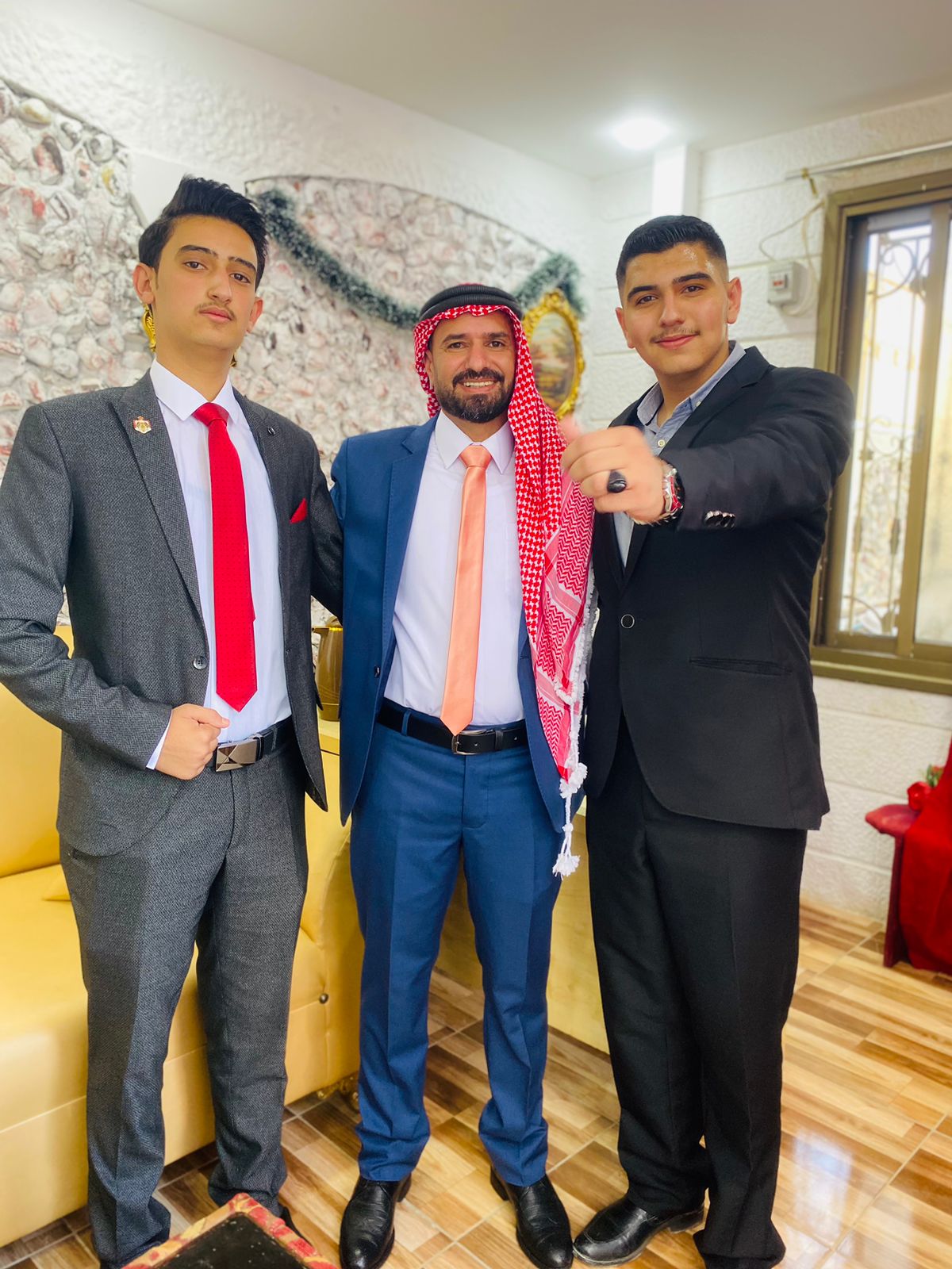 اَلْجَاهِة ضَمَّتْ شَخْصِيَّاتٍ مِنْ أَصْحَابِ اَلْعَطُوفَةِ وَالسَّعَادَةِ وَوُجَهَاءُ مِنْ عَشِيرَةٍ اَلْكِرِيمَيْنِ وَالْعُوَابْدَة وَجَمْعٍ مِنْ اَلْأَقَارِبِ وُاَلزُّمَلَاءِ وَالْمُحِبِّينَ. دَاعِينَ اَللَّهَ - عَزَّ وَجَلَّ - أَنْ يُبَارِكَ للِزَمِيلِ أَمْجَدْ وَخَطِيبَتُهُ ، مُتَمَنِّينَ لَهُمَا حَيَاةُ مِلْؤُهَا اَلْفَرَحُ وَالسَّعَادَةُ فِي ظِلِّ اَلْأَهْلِ وَالْأَحِبَّةِ.