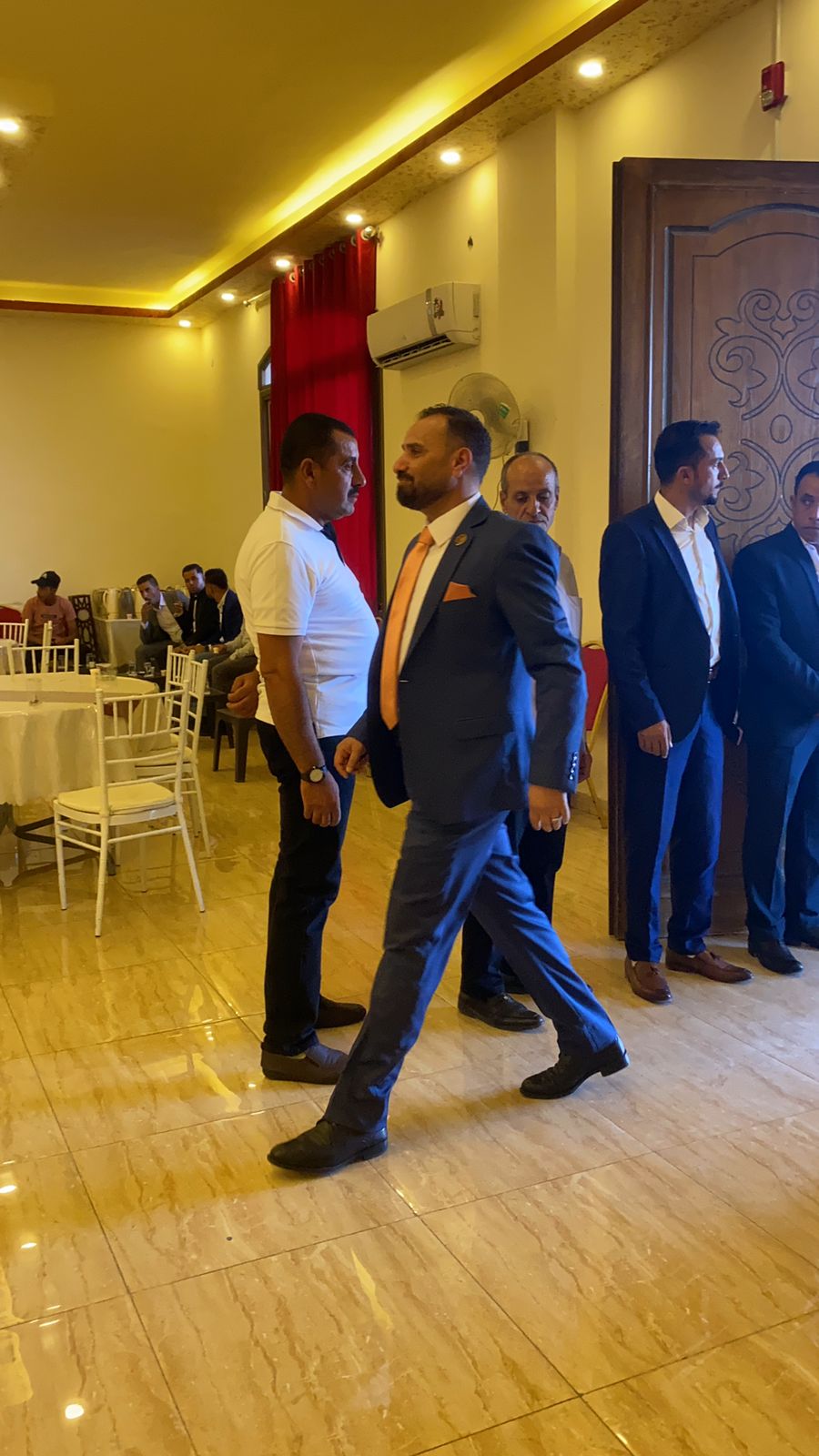 فِيمَا أَنْهَى وَالِدُ اَلْعَرِيسِ كَلِمَةً لِلْعَرِيسِ أَمَامَ اَلْحُضُورِ لِتَكَوُّنِ وَصِيَّةِ اَلْأَبِ لِلِابْنِ لِلْمُحَافَظَةِ عَلَى اَلْقِيَمِ وَالْأَخْلَاقِ وَالْمُحَافَظَةِ عَلَى عَرُوسِهِ.